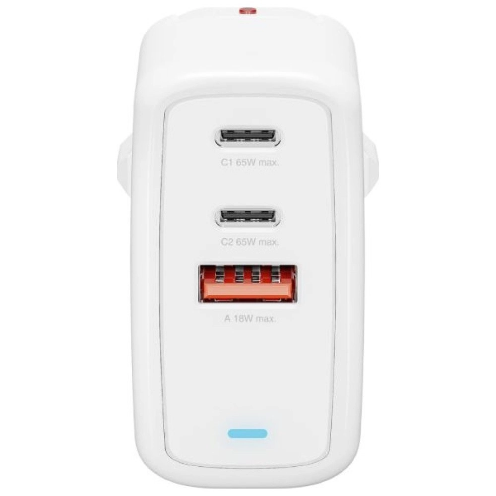 Haal maximaal vermogen uit een minimale behuizing. GaN‑technologie maakt aanzienlijk kleinere afmetingen mogelijk met behoud van top‑efficiëntie en lagere warmteontwikkeling. De lader levert tot 65 W via USB‑C en laadt zo moeiteloos laptop, tablet en smartphone snel op. Dankzij drie poorten bedien je eenvoudig meerdere apparaten tegelijk.