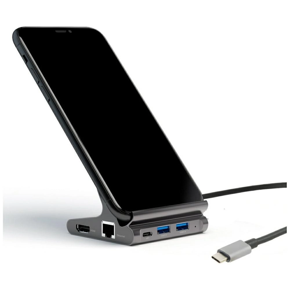 Desktop USB‑C-dockingstation 7‑in‑1 met standaard voor tablet en telefoon met Samsung DeX-ondersteuning