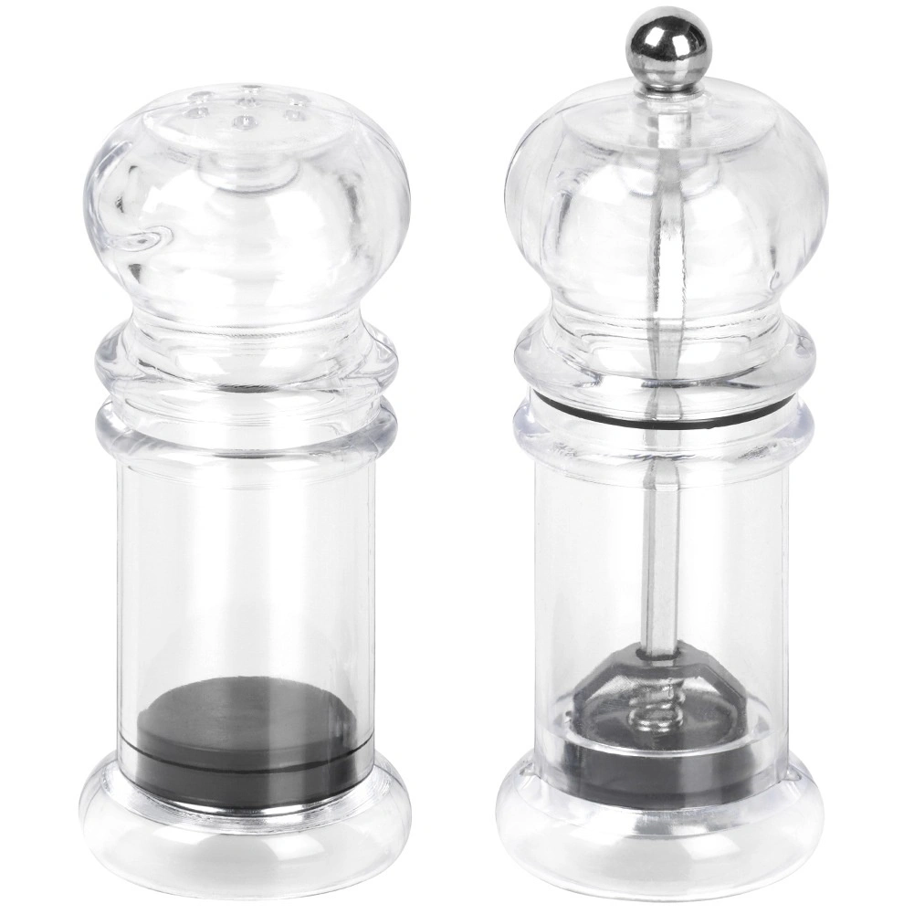 Deze elegante set combineert duurzaam acryl met een keramisch maalmechanisme voor soepel malen, zelfs van hardere peperkorrels. De transparante uitvoering biedt directe controle over inhoud en niveau. Dankzij de tijdloze uitstraling komen de molen en het zoutvaatje mooi tot hun recht op de eettafel en in professionele omgevingen.