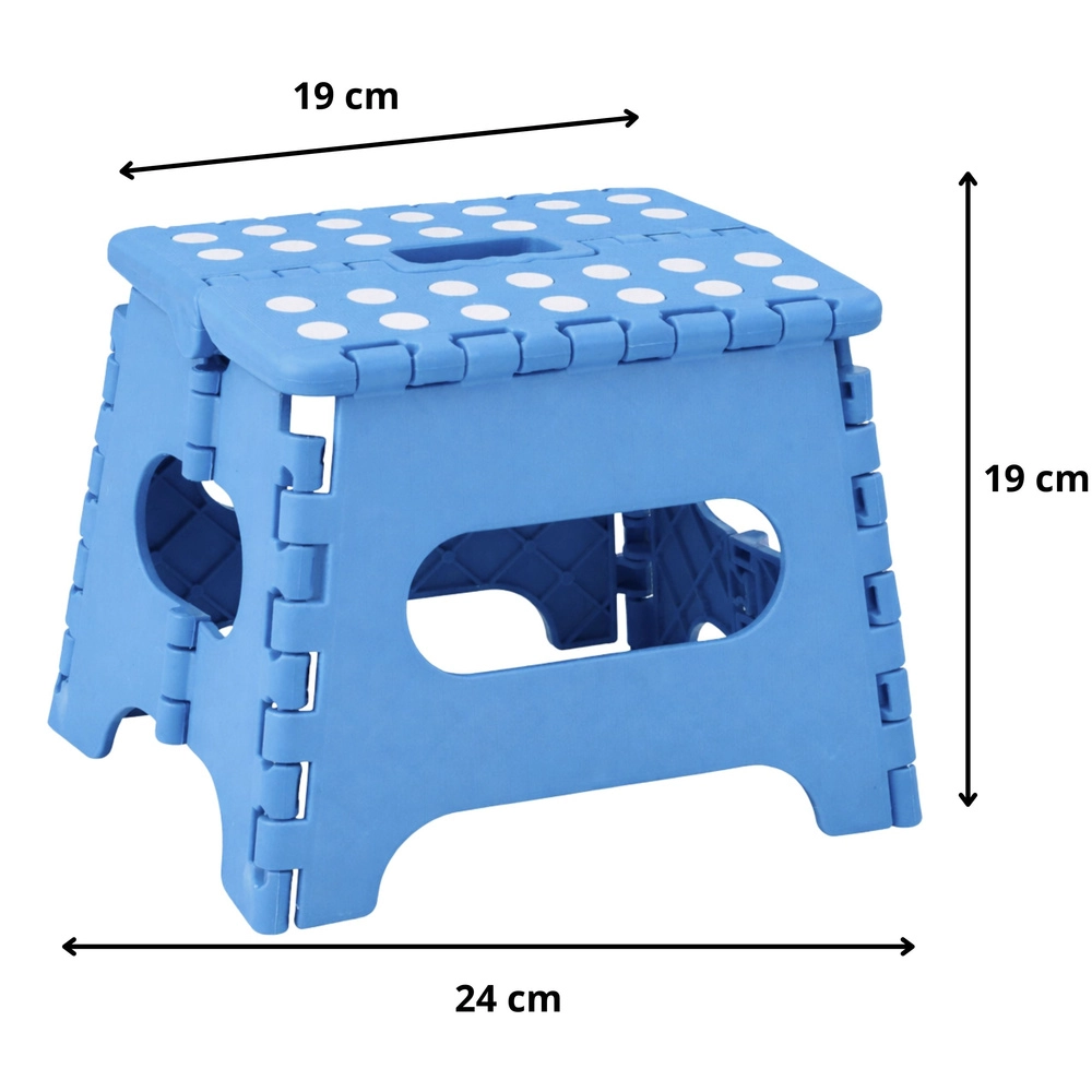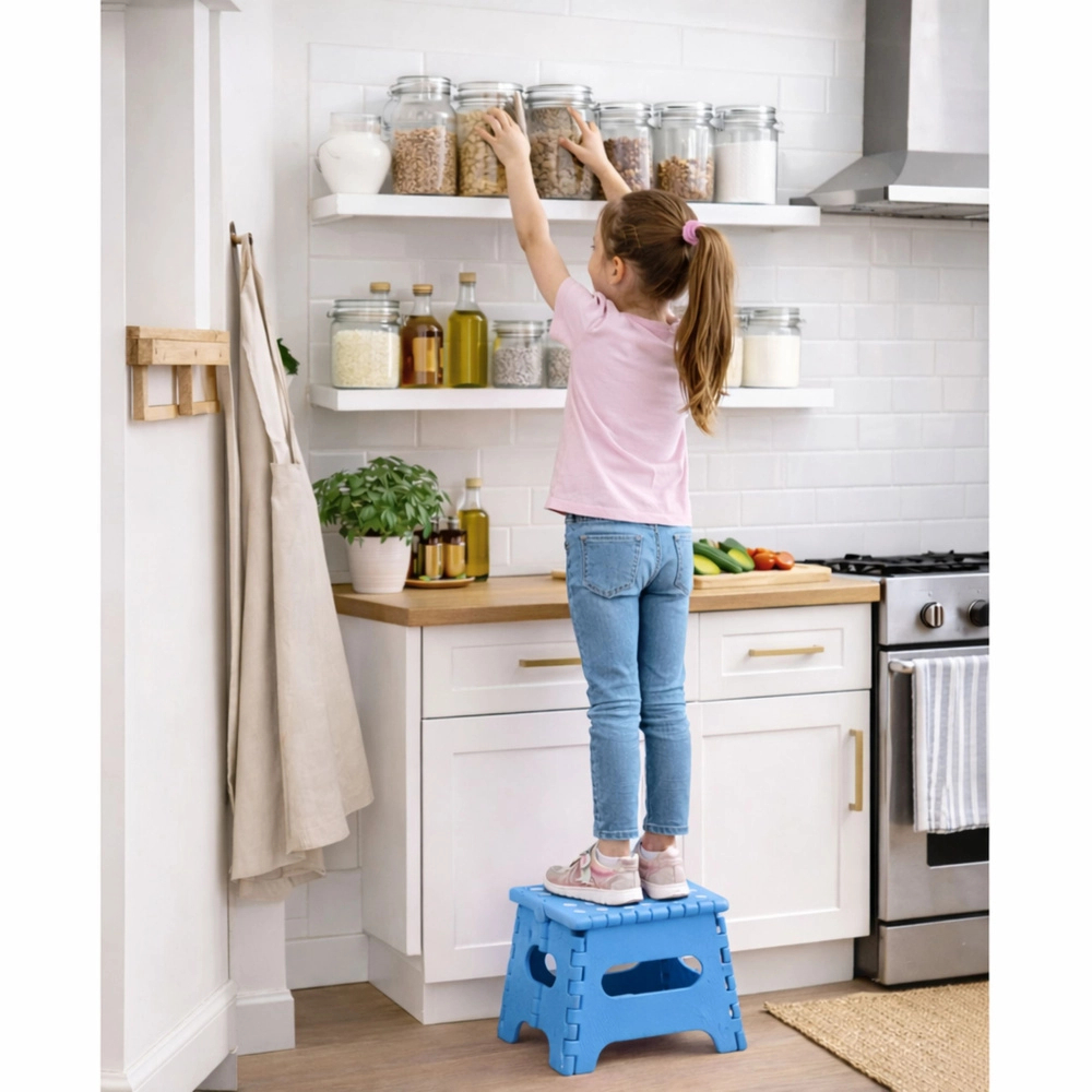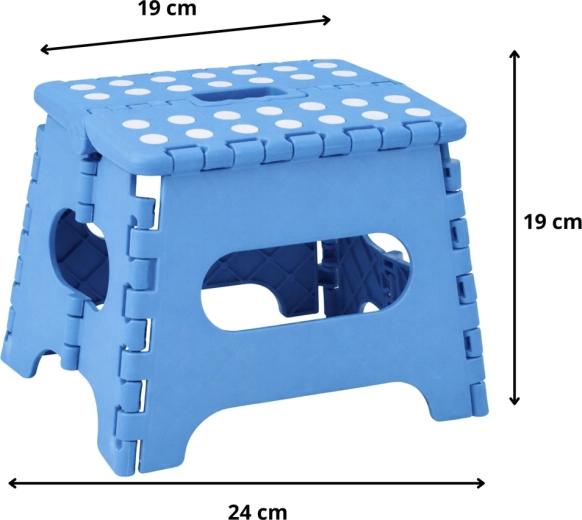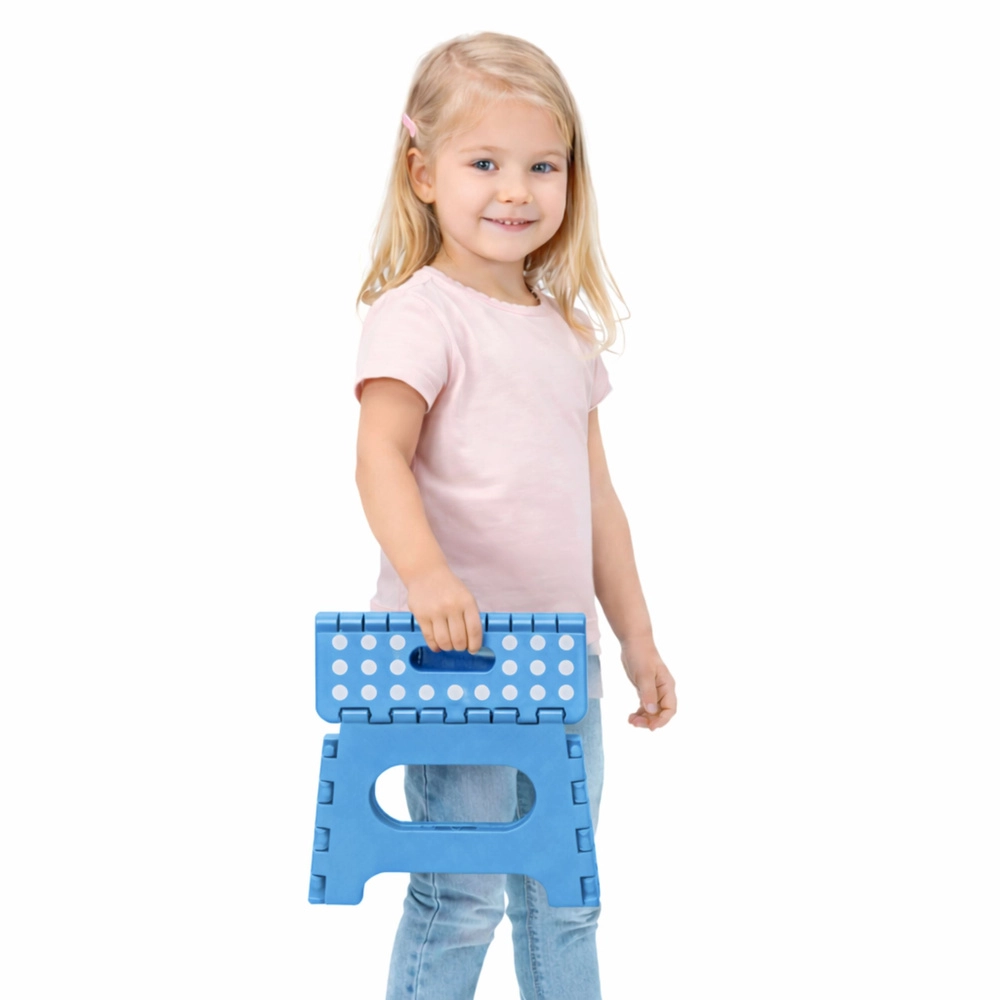 Praktisch opvouwbaar krukje, ideaal voor thuis en onderweg. Biedt een stabiele ondersteuning, antislip oppervlak en makkelijk dragen dankzij het geïntegreerde handvat. Dankzij de opvouwbare constructie bespaart het ruimte en past het in de keuken, badkamer, kinderkamer en ook op de camping.