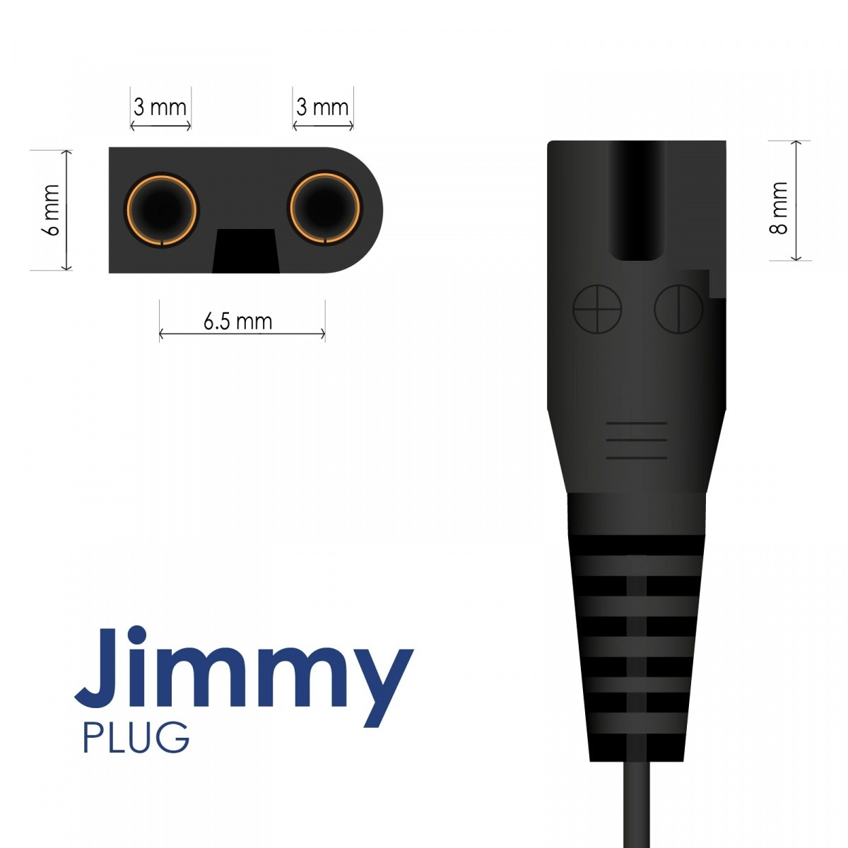 Uitgang 34,2 V / 0,6 A (20,54 W) komt overeen met de originele JIMMY-adapter. Zorgt voor maximale levensduur van de accu zonder risico op overladen en oververhitting.