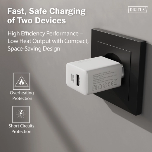 Compacte USB‑oplader met GaN-technologie biedt 30 W vermogen voor snel en betrouwbaar opladen. Dankzij de poorten USB‑C (tot 30 W) en USB‑A (tot 18 W) kan hij smartphones, tablets en lichte laptops van stroom voorzien. Bij gelijktijdig gebruik van beide poorten levert hij tot 15 W. De moderne GaN II zorgt voor hogere efficiëntie, minder warmte en compactere afmetingen – ideaal voor thuis, kantoor en onderweg. De behuizing van 98% PCR‑kunststof en de plasticvrije verpakking spreken ook milieubewuste gebruikers aan.