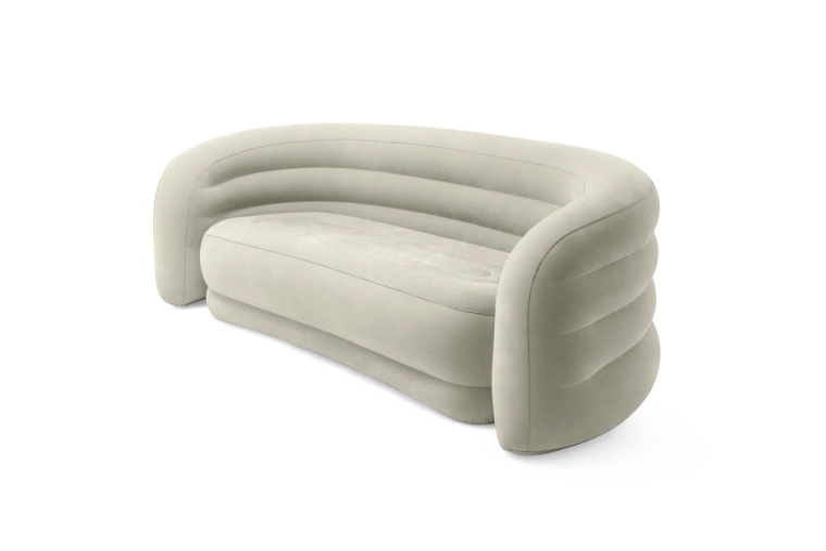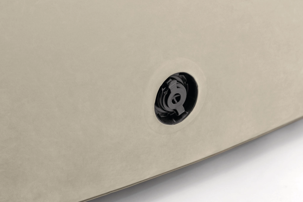 De stijlvolle opblaasbare sofa Curve combineert modern design, een fluweelzachte afwerking in olijfbeige en maximale praktische bruikbaarheid. Dankzij de 2-in-1-klep blaas je haar in een oogwenk op of laat je haar leeglopen; ze is licht, draagbaar en past perfect in de woonkamer, relaxzone en op het terras.