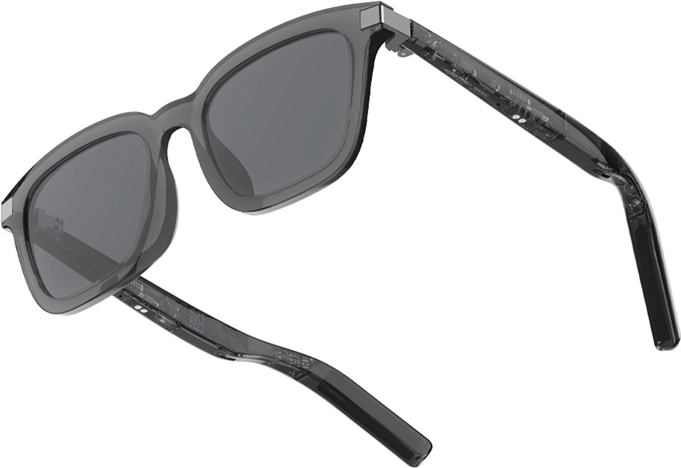 Lenzen van duurzaam PC-materiaal blokkeren betrouwbaar UV-straling en het geluid is te schakelen tussen binnen- en buitenmodus voor optimale luisterervaring. Halftransparante, robuuste pootjes met zichtbare elektronica onderstrepen de moderne look, terwijl kwaliteits scharnieren en het lichte TR-frame de hele dag comfort bieden.