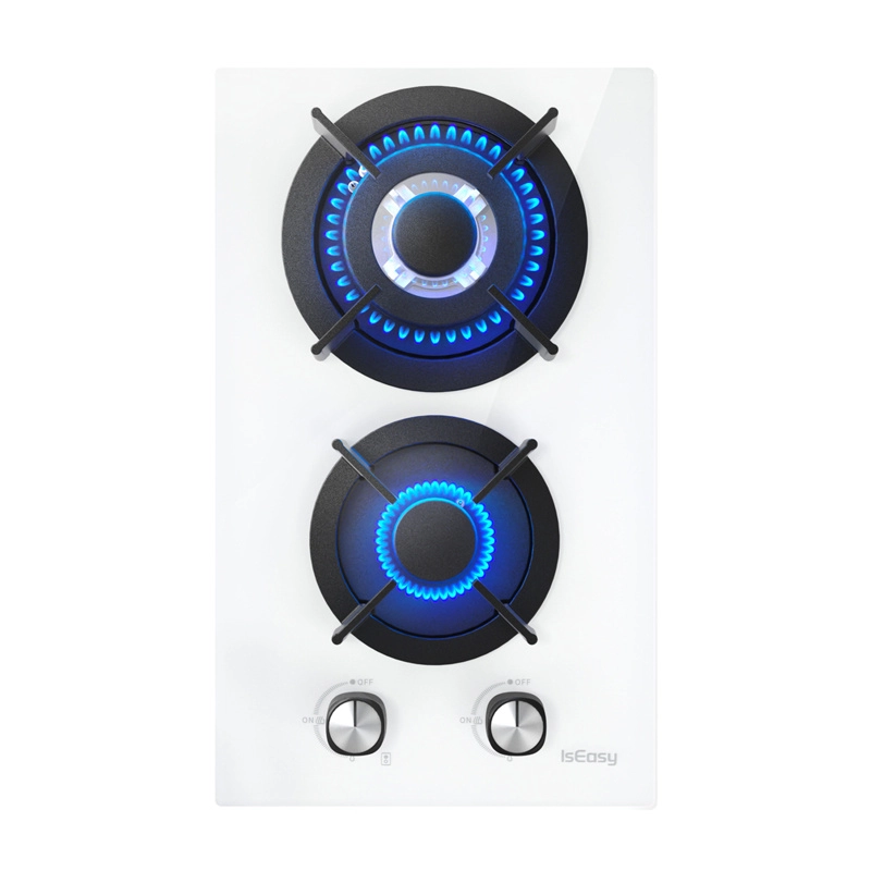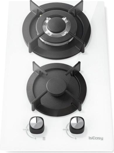 De compacte gas kookplaat ISEASY met twee branders biedt een combinatie van modern design en prestaties. Het elegante glazen oppervlak in witte kleur is eenvoudig te reinigen, de 2 branders van 3300 W en 1000 W zorgen voor snel koken en zacht sudderen, en de inbouwinstallatie bespaart ruimte in kleinere keukens.