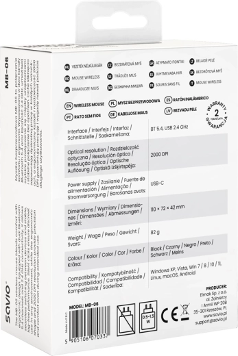 De draadloze SAVIO MB-06 muis biedt een modern design en eersteklas connectiviteit voor dagelijks werk. Bluetooth 5.4 zorgt voor een stabiele verbinding en een lager energieverbruik, terwijl de 2.4 GHz USB‑ontvanger directe respons zonder kabels levert. Dankzij twee Bluetooth‑kanalen schakel je met één druk op de knop eenvoudig tussen laptop en tablet.