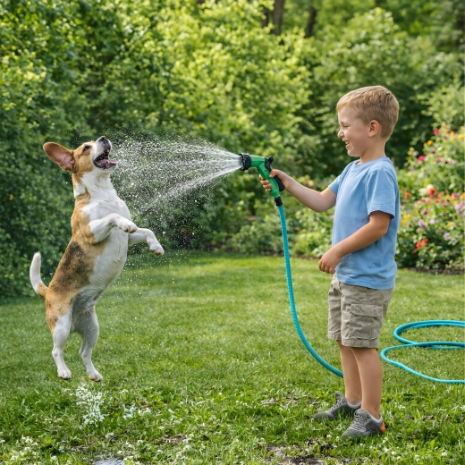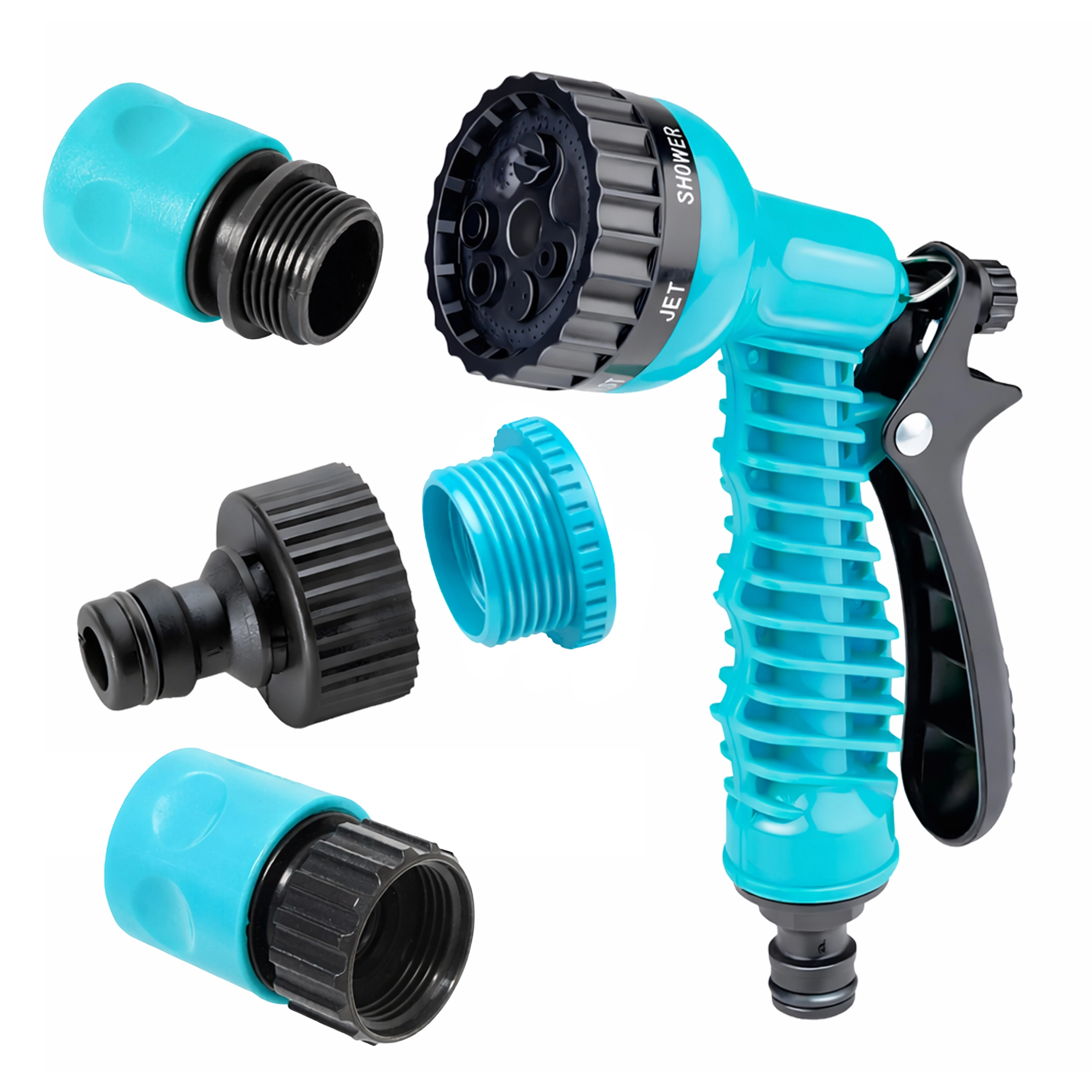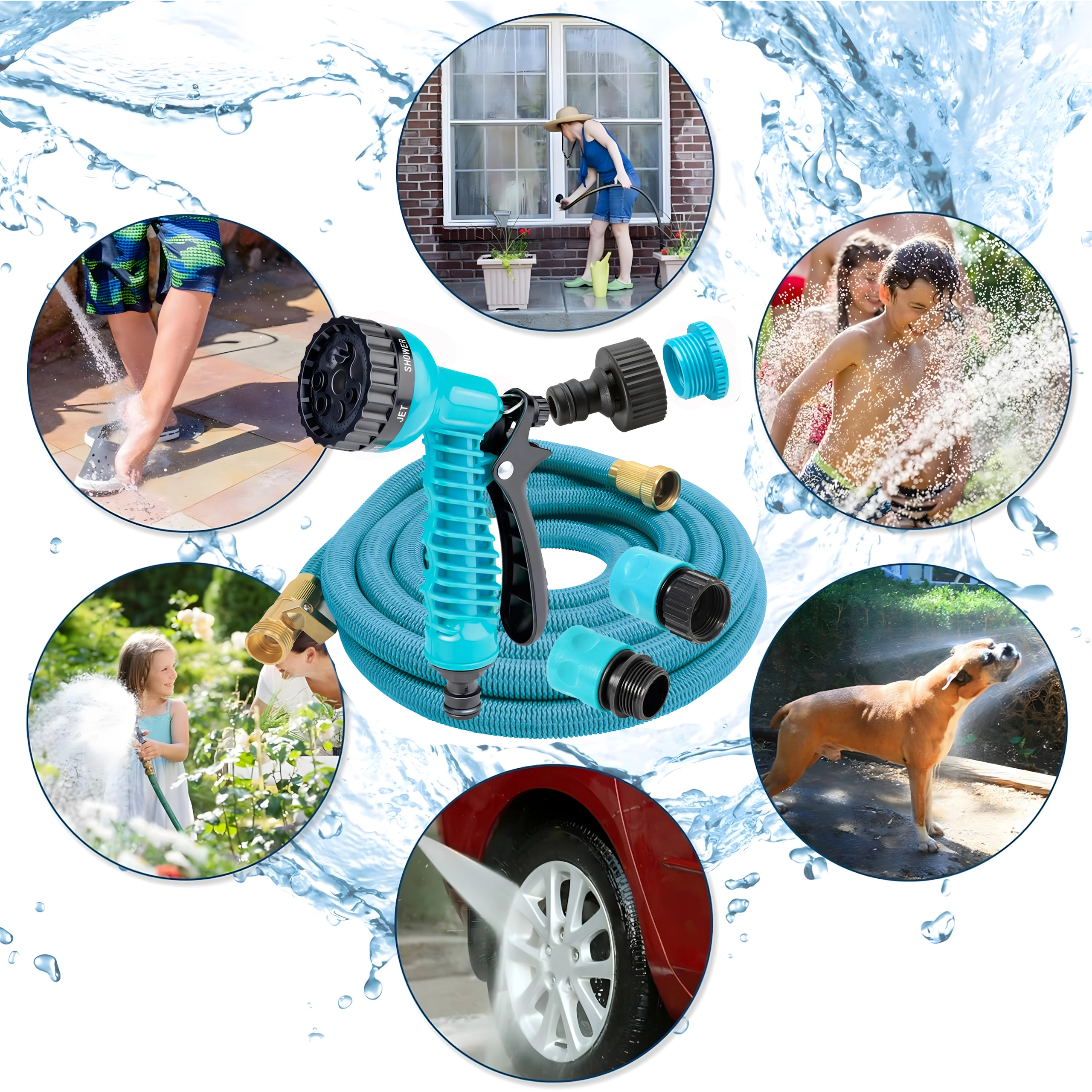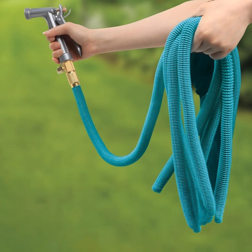 Inclusief een spuitpistool met meerdere standen voor fijne nevel, douche en krachtige straal – ideaal voor het bewateren van borders, het wassen van de auto of het afspuiten van terrassen. De slang is licht van gewicht, eenvoudig te verplaatsen en op te bergen aan een houder of in een box.