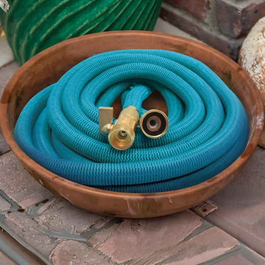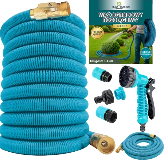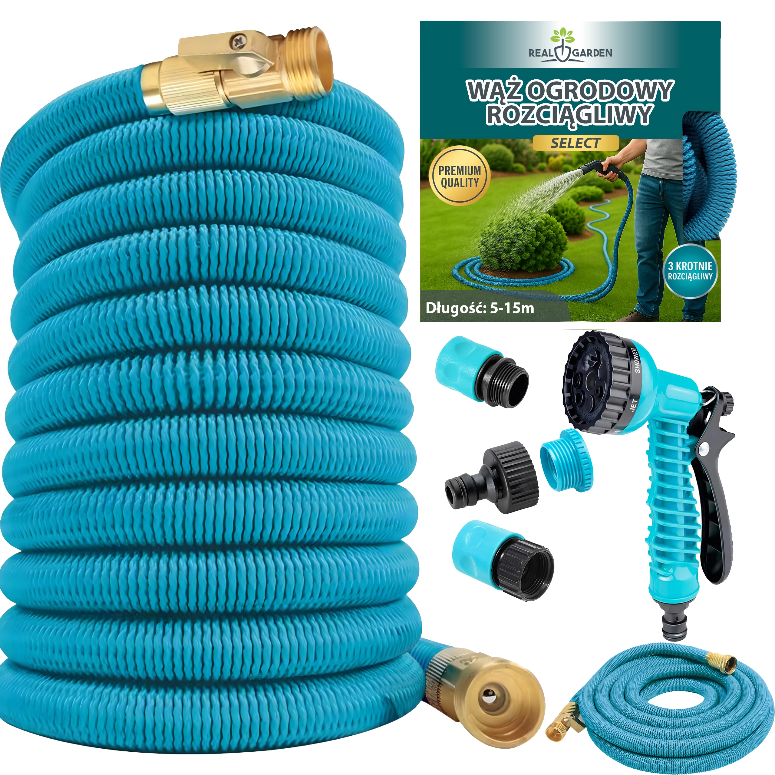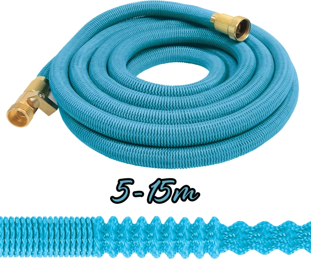 Geniet van comfortabel bewateren met de flexibele uitschuifbare slang, die bij het openen van de kraan verlengt tot ca. 15 m en na het uitschakelen compact samentrekt. Dankzij de kink‑resistant mantel knikt of draait hij niet, en messing koppelingen zorgen voor een dichte en langdurig betrouwbare aansluiting.