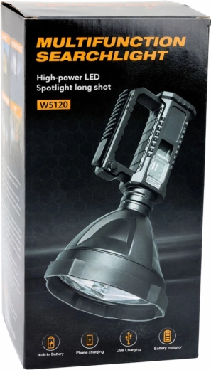 De schijnwerper heeft een ingebouwde accu met USB-opladen en een handige powerbankfunctie voor noodbatterij voor uw telefoon. Waterbestendigheid IPX5 beschermt tegen regen en spatwater. De ergonomische handgreep en robuuste afwerking zorgen voor comfortabel vasthouden en een lange levensduur.
