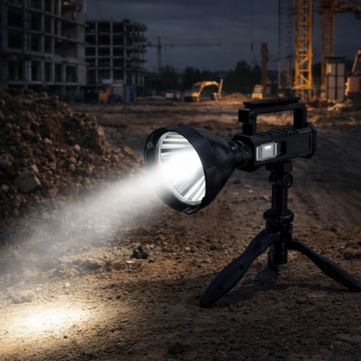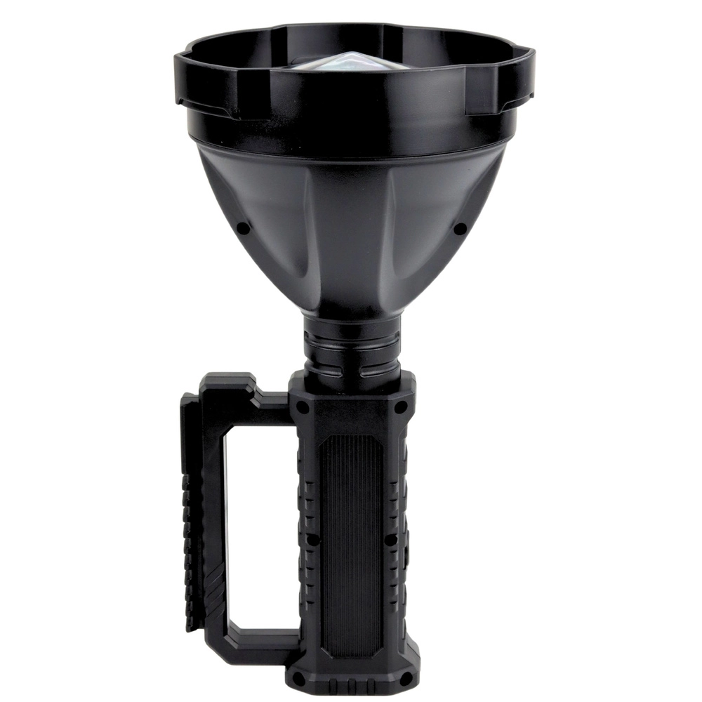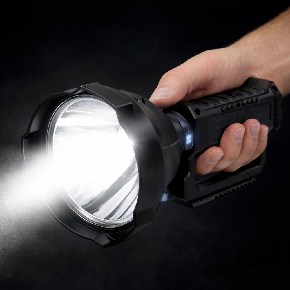 De grote parabool en diepe reflector creëren een smalle, verre lichtkegel – ideaal voor zoekacties, veldwerk en nachtelijke activiteiten.