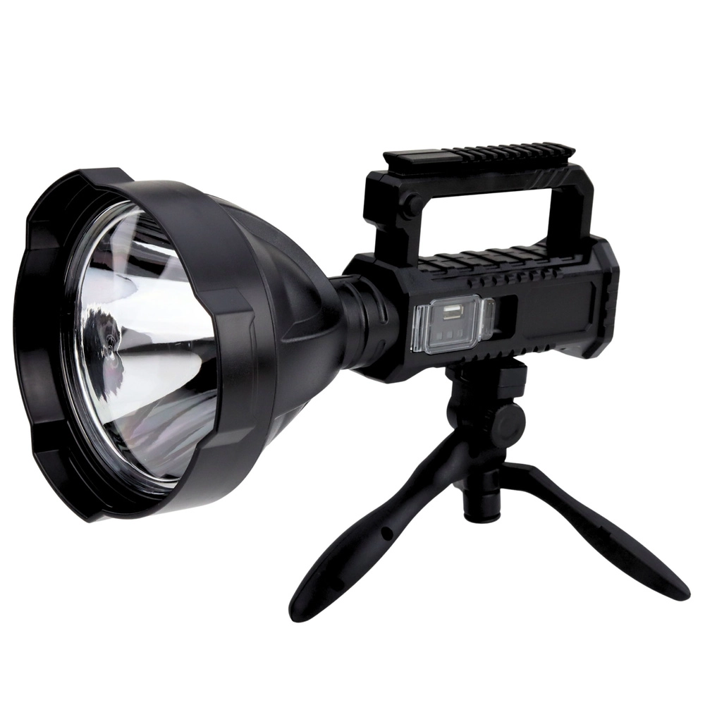 De professionele LED-schijnwerper is een multifunctionele lichtbron voor veeleisende gebruikers. Dankzij de grote reflector biedt hij een krachtige, geconcentreerde reikwijdte, 4 lichtstanden en IPX5-bestendigheid. De geïntegreerde accu met USB-opladen en powerbankfunctie zorgt voor energie in het veld, terwijl het statief stabiel, handsfree gebruik mogelijk maakt.