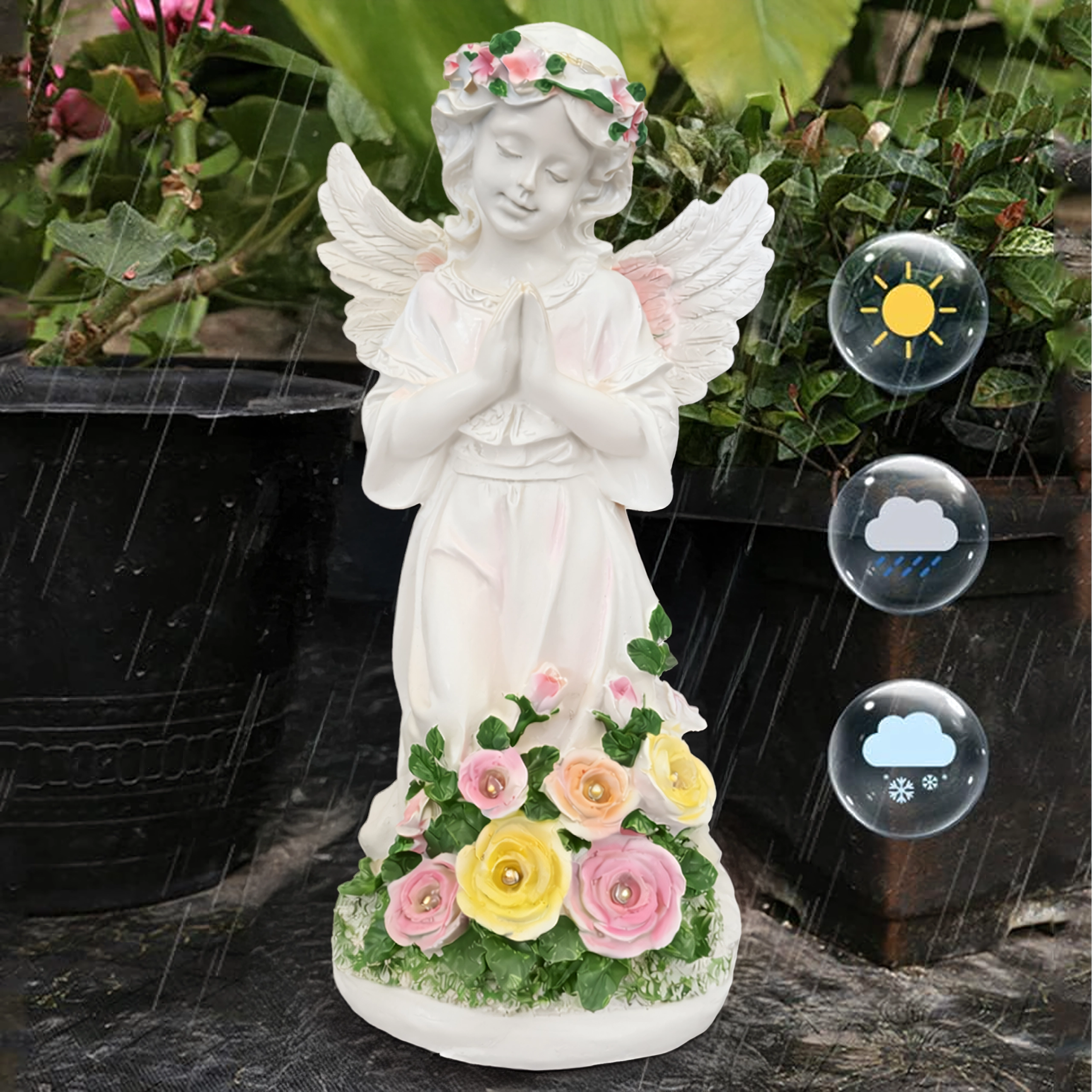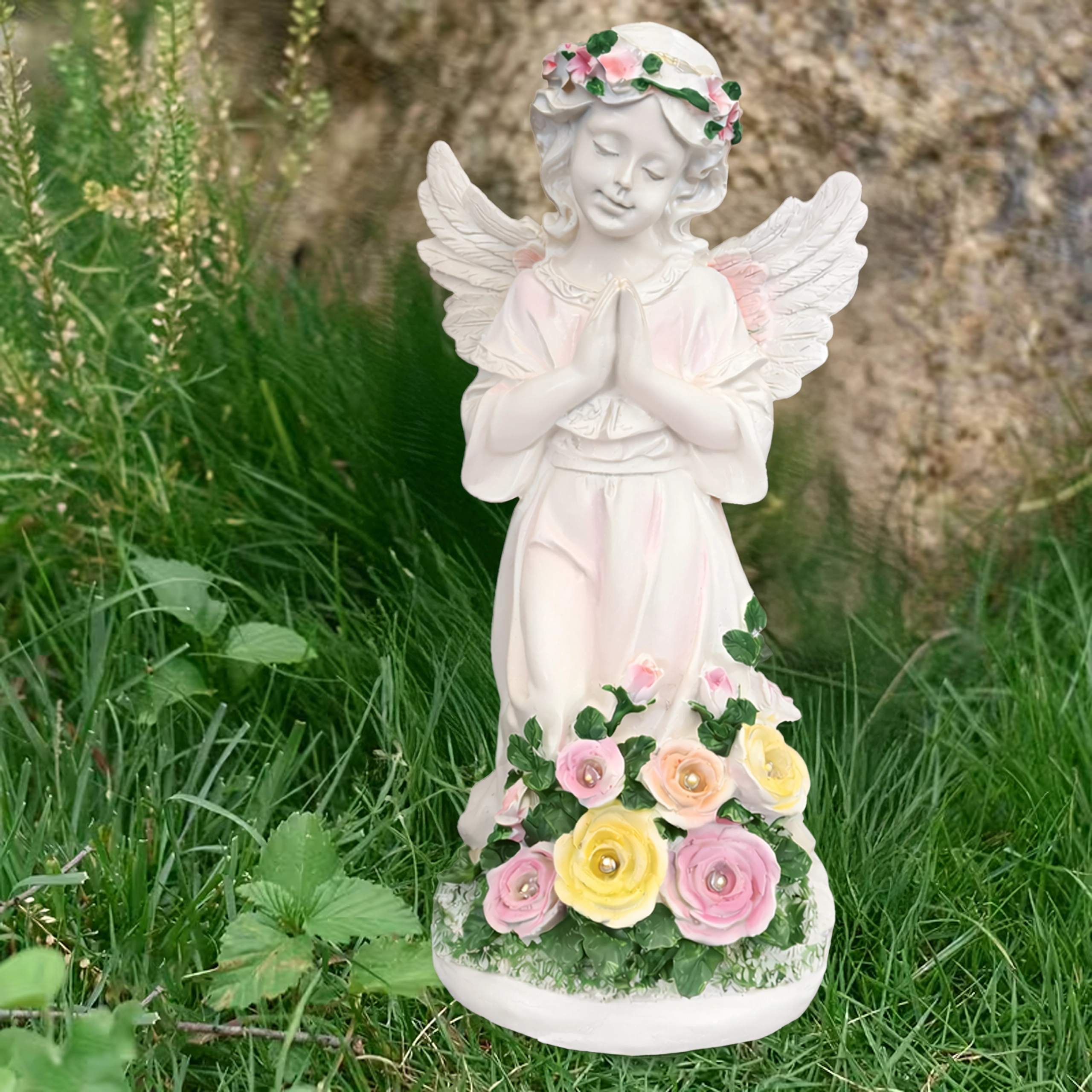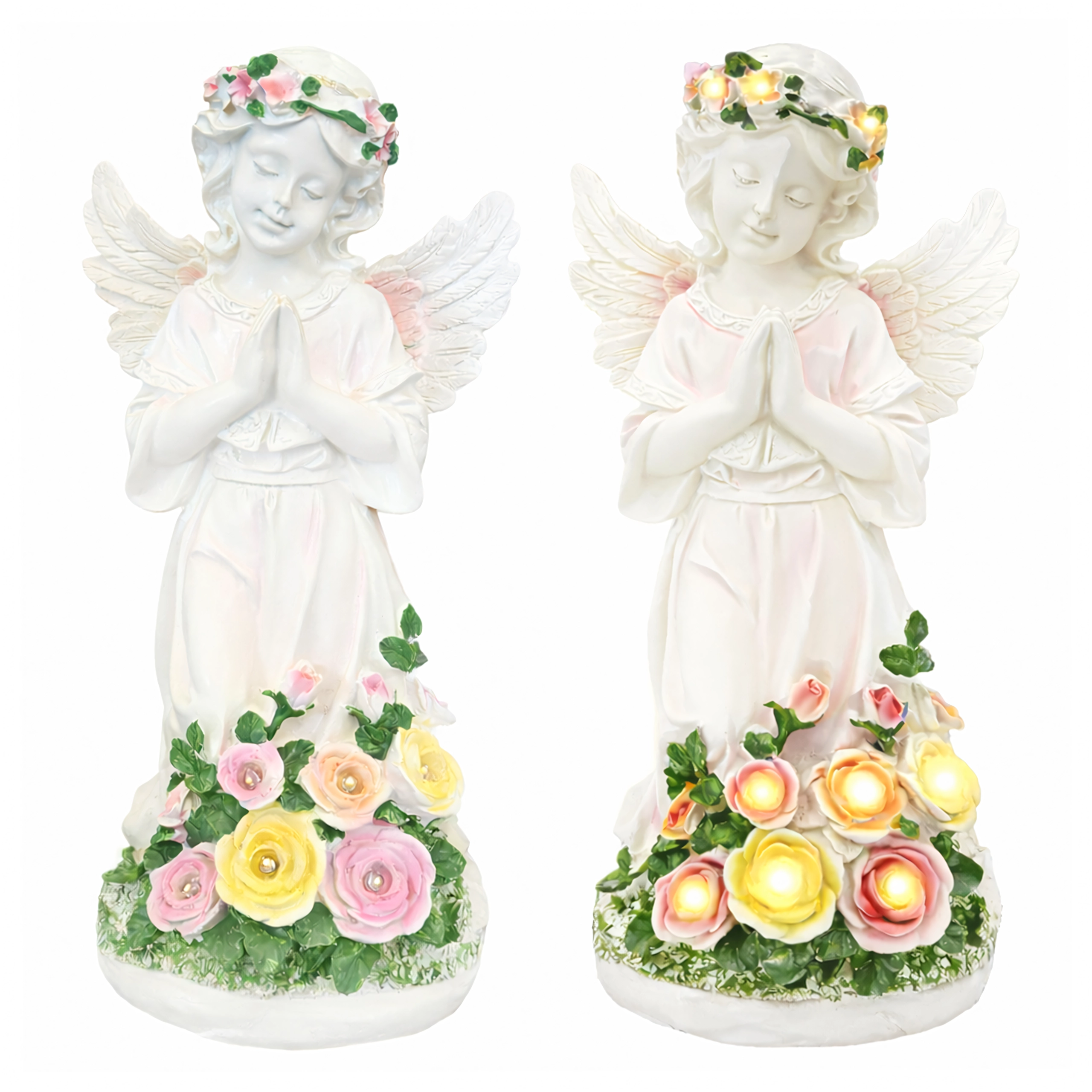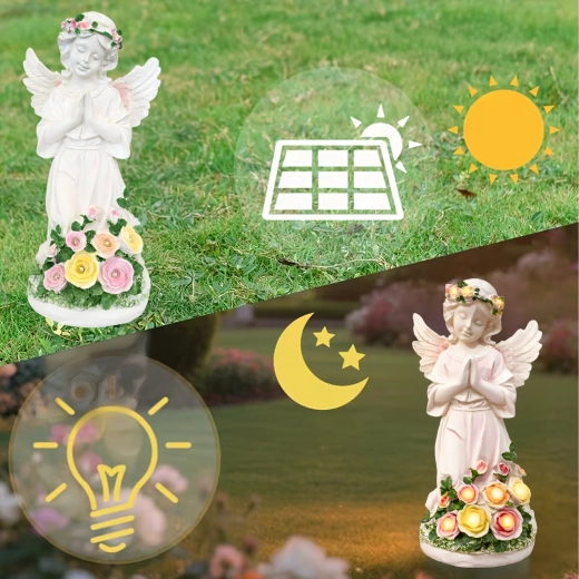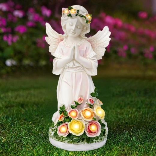 Het engeltje werkt overdag harmonieus als decoratie en ’s nachts als zacht oriëntatielicht. Warme LED’s benadrukken de kleuren van de rozen en zorgen voor een prettige, rustige sfeer voor ontspanning en herinnering.