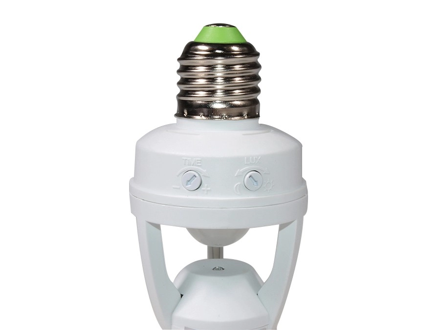 Automatiseer verlichting zonder schakelaar dankzij de slimme E27-fitting met een 360° schemer- en bewegingssensor. Eenvoudige installatie, instelbare brandtijd en energiebesparing voor gangen, kelders, garages en magazijnen.