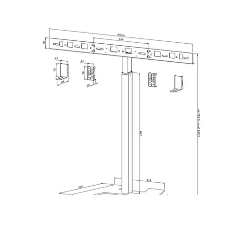 De standaard is breed compatibel met de meeste videobars, PTZ-camera’s en soundbars. De verstelbare montagerail maakt het mogelijk de breedte en hoogte van de bevestiging te wijzigen en het VESA-frame kan in vier posities worden ingesteld (200/400/600/800), wat de integratie met displays van 43–110" vereenvoudigt.