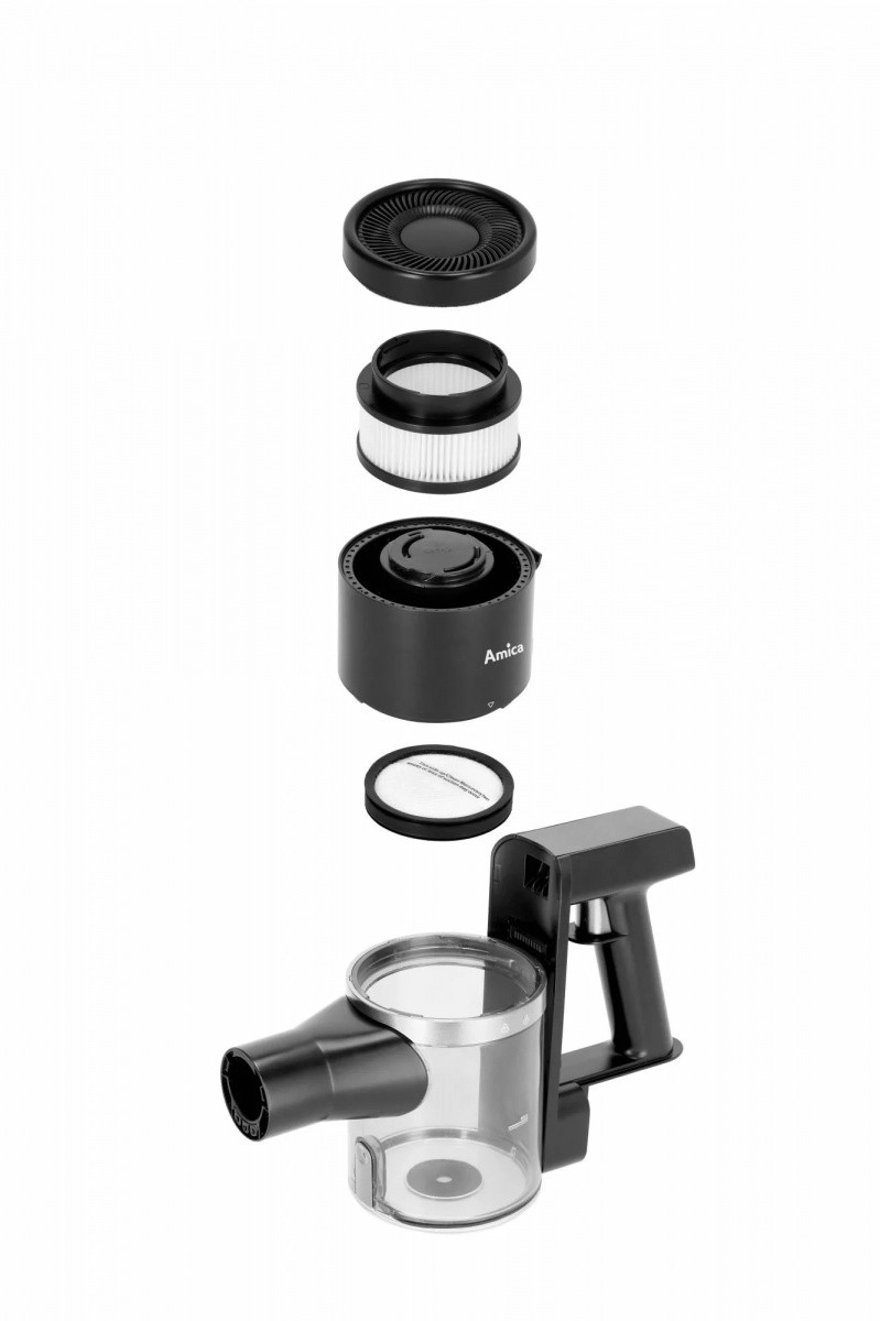 Voor allergiepatiënten en gezinnen met kinderen is er het HEPA‑filter, dat tot 99,95% van fijne deeltjes, pollen en allergenen opvangt. De verwisselbare Li‑ion accu biedt tot 60 minuten schoonmaken per lading (afhankelijk van modus) en maakt ononderbroken gebruik mogelijk met een extra accu. LED‑verlichting op de elektrobosborstel onthult stof in donkere hoeken, terwijl soft start en elektronische vermogensregeling het dagelijks gebruik aangenamer maken.
