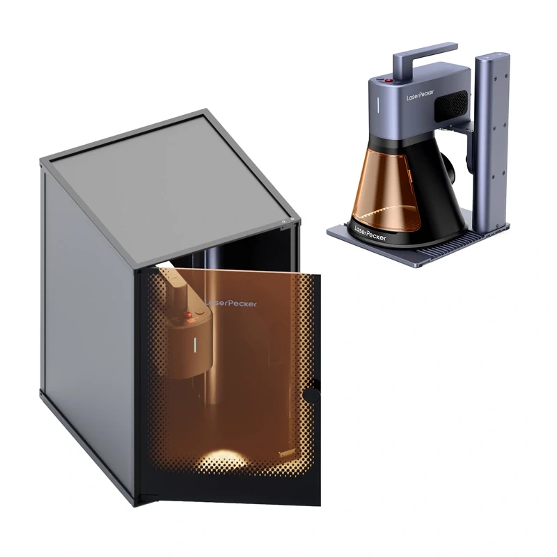Safeguard-veiligheid: Beschermkap met magnetisch filter en openingssensor, noodstopknop, effectieve rookafzuiging en compatibiliteit met een luchtreiniger. Intuïtieve software LaserPecker Design Space (iOS/Android/Windows/macOS) en ondersteuning voor LightBurn zorgen voor een soepele workflow van preview tot definitief graveren.