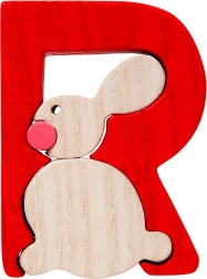 De houten letter R met konijntje helpt kinderen op een speelse manier de basis van het alfabet onder de knie te krijgen. Je kunt hem gebruiken als onderdeel van een puzzel, om een naam te vormen of als decoratie op de muur of meubels (bij gebruik van dubbelzijdige tape). De massieve uitvoering zorgt voor een lange levensduur en veilig speelplezier.