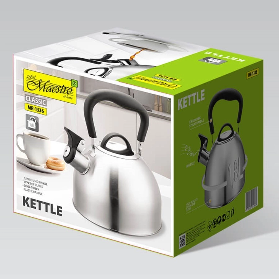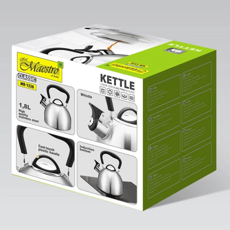 De traditionele MAESTRO-theeketel met een inhoud van 1,8 l is ideaal voor liefhebbers van thee en koffie. Gemaakt van hoogwaardig roestvrij staal voor een lange levensduur, voorzien van een ergonomisch, hittebestendig handvat voor veilig schenken en een fluit als kooksignaal. Geschikt voor alle soorten kookplaten, inclusief inductie.