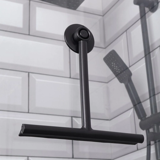 De flexibele snede van thermoplastisch elastomeer (TPE), vergelijkbaar met rubber, garandeert een zachte maar doeltreffende veegwerking zonder het oppervlak te beschadigen. De lichte constructie van duurzame kunststof in modern zwart geeft je badkamer een elegante uitstraling en is bovendien gemakkelijk op te bergen.