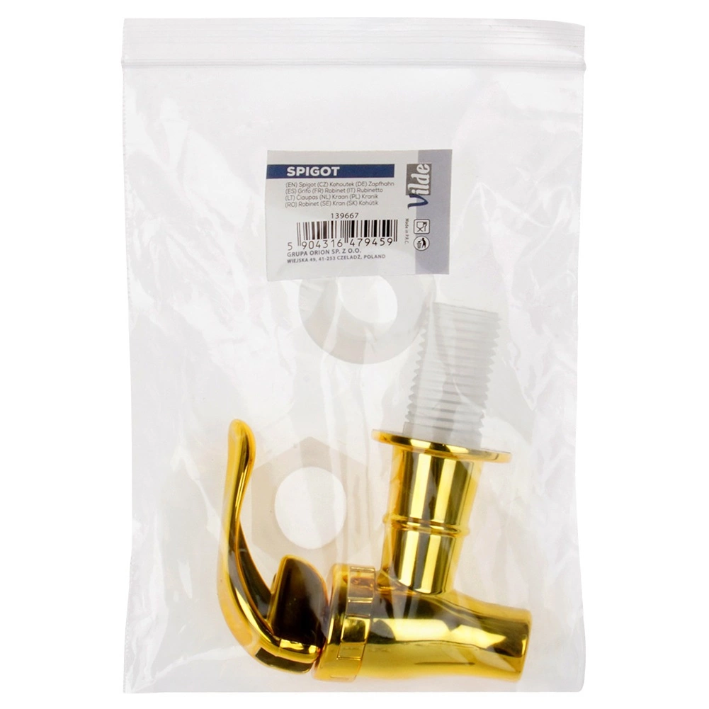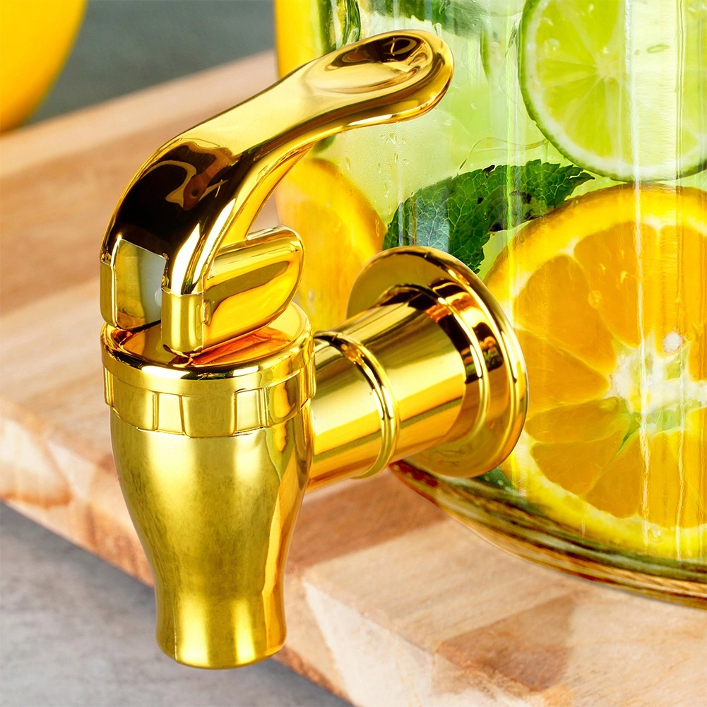 De elegante gouden kraan maakt van uw dispenser een designstuk en past perfect bij thuisfeestjes en tuinparty’s.