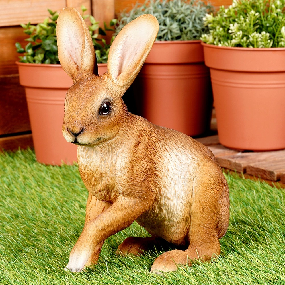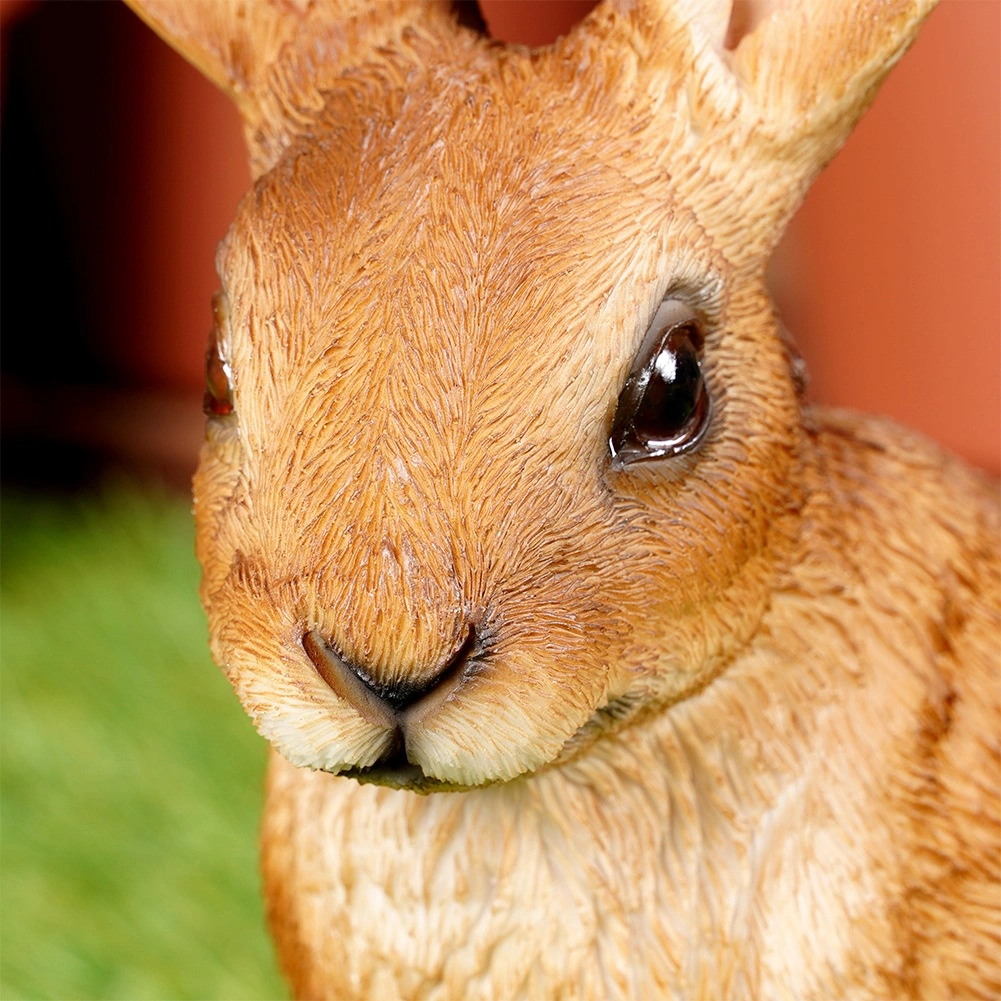 Dit decoratieve hazenbeeld is ontworpen om natuurlijk in zowel tuinbeplanting als een moderne buitenruimte te passen. Precieze afwerking en levendige kleuren bootsen een echt dier natuurgetrouw na, waardoor het direct de blikvanger van je ruimte wordt.