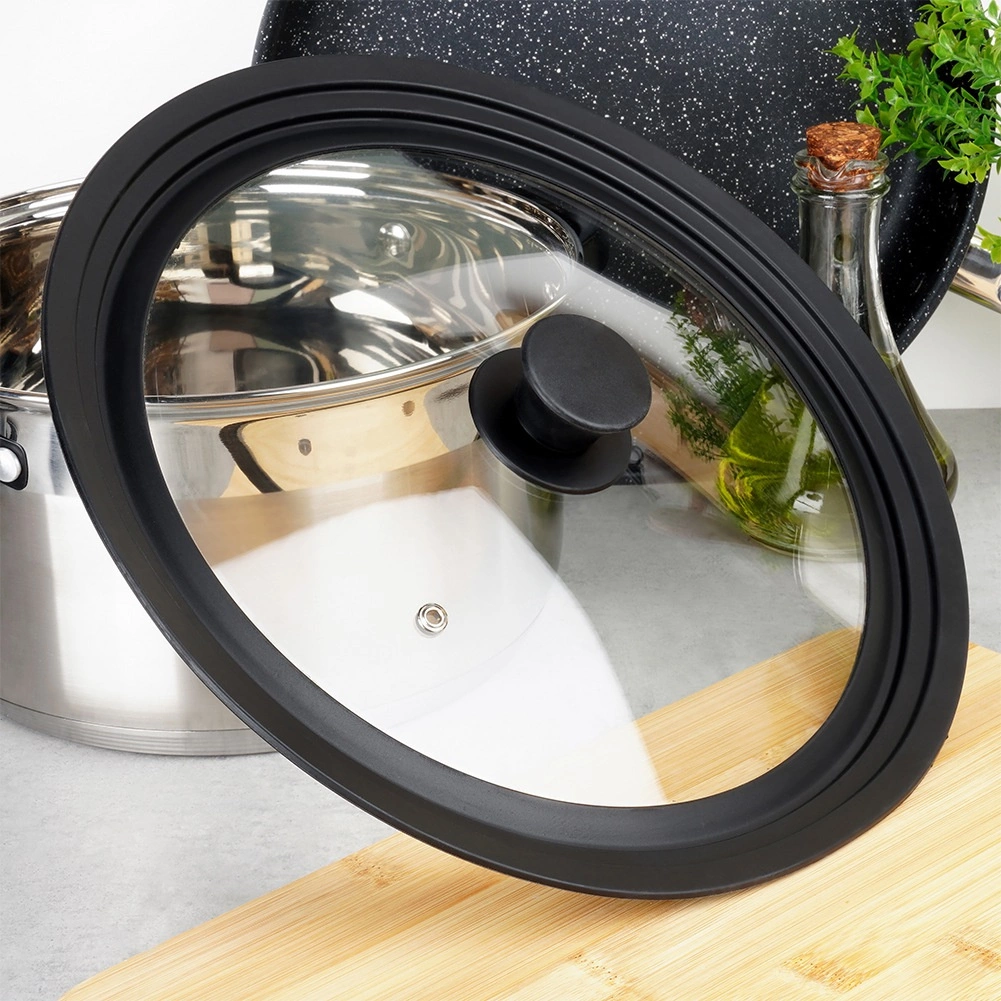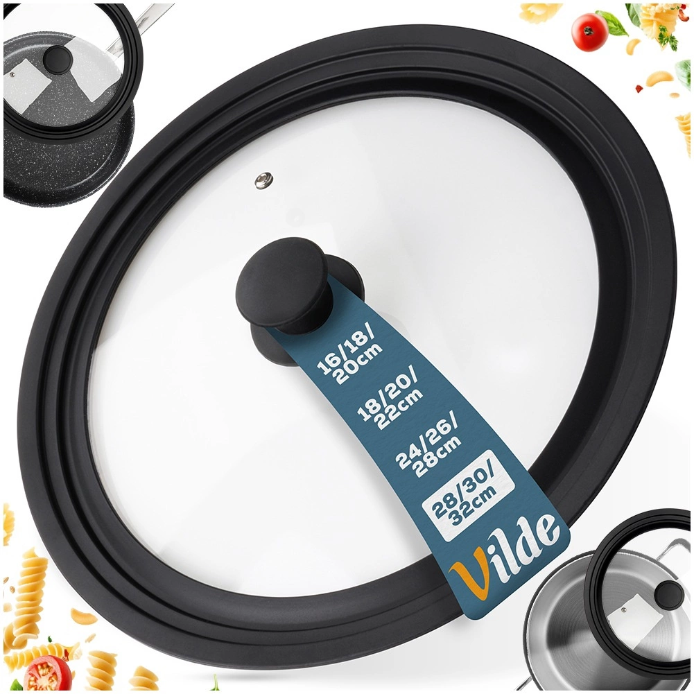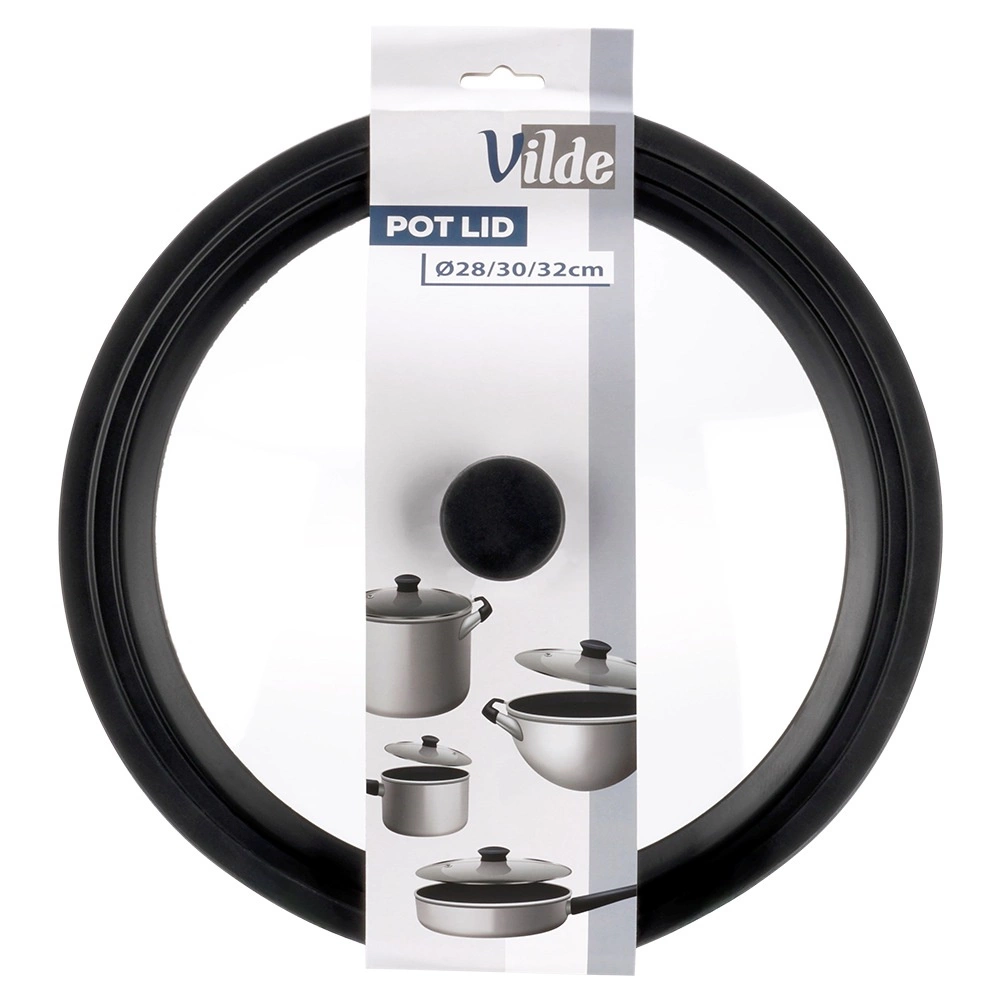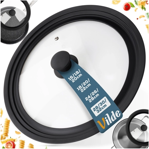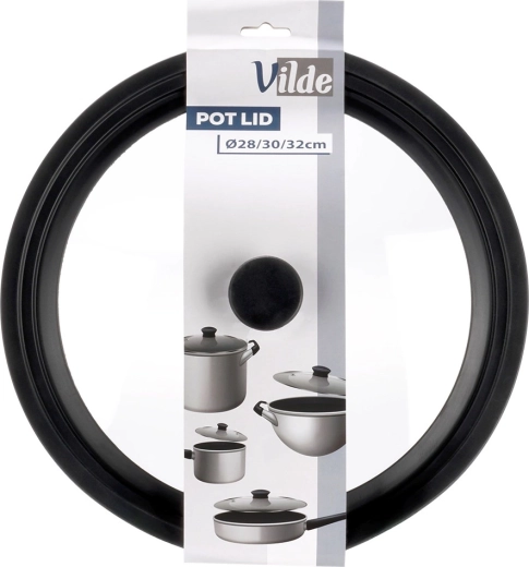 Op zoek naar één deksel dat op meerdere pannen past? Dit universele 3-in-1 deksel dekt diameters van 28, 30 en 32 cm. Het transparante geharde glas houdt het kookproces zichtbaar, terwijl de brede siliconen rand voor een perfecte afdichting zorgt en de randen van potten en pannen tegen beschadiging beschermt.