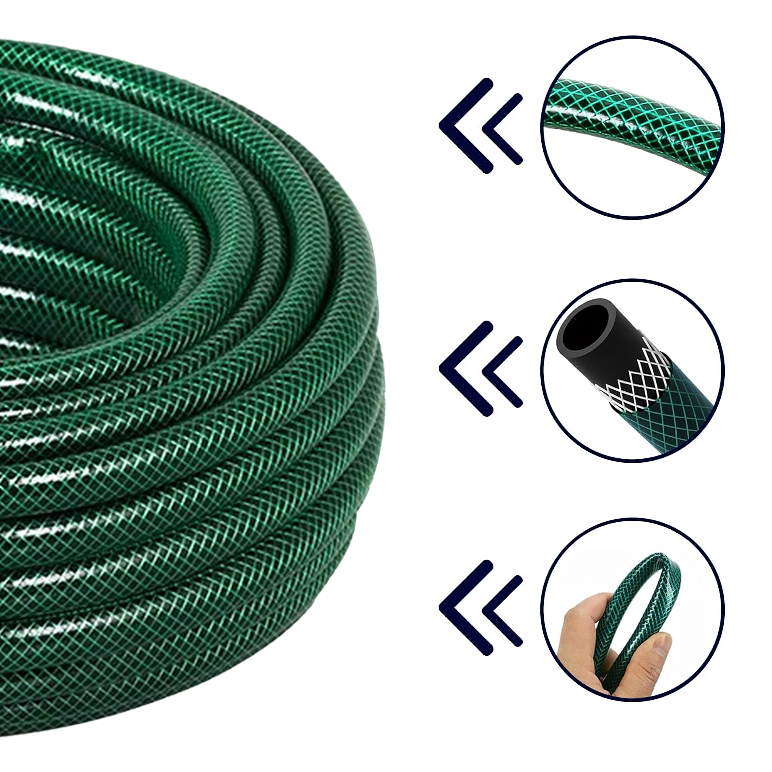 De kruisgevlochten versteviging helpt draaien en knikken te voorkomen, zodat het sproeien soepel en ononderbroken verloopt.