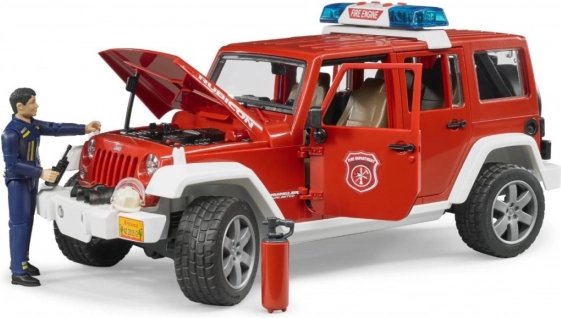 De brandweer Jeep Wrangler van Bruder is een gedetailleerd model dat elk kinderbrandweerkorps compleet maakt. Deze Jeep heeft openende deuren, motorkap en achterraam, wat de interactiviteit verhoogt. Het model is ook uitgerust met een afneembaar dak en trekhaak. Dankzij de mogelijkheid om met een verlengd stuur te sturen, wordt het spelen nog leuker.