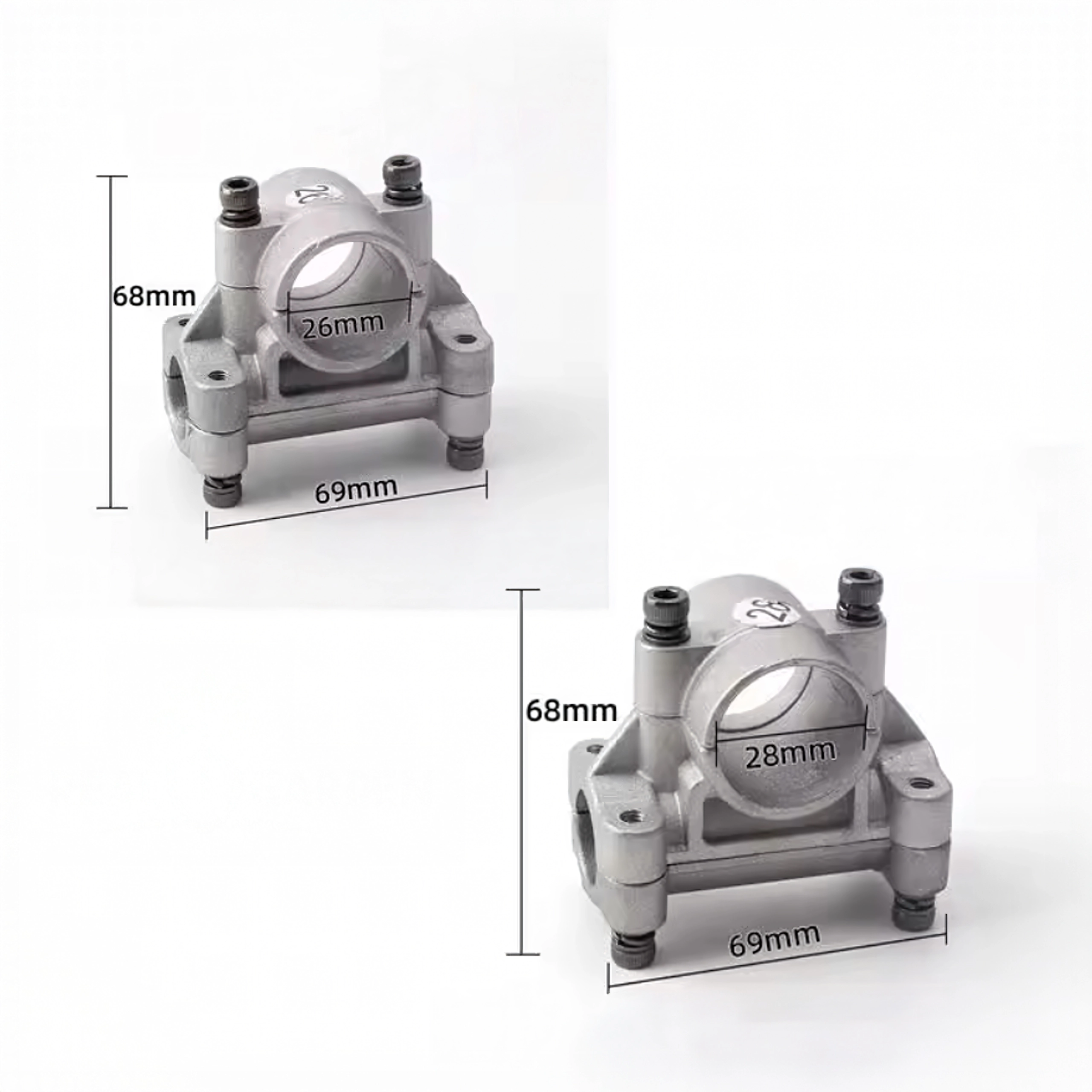 De verstelbare klem past stevig op de trimmerbuis met een diameter van 26–28 mm. Montage is snel en vereist geen speciaal gereedschap.