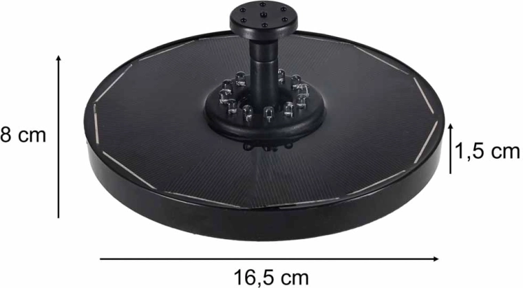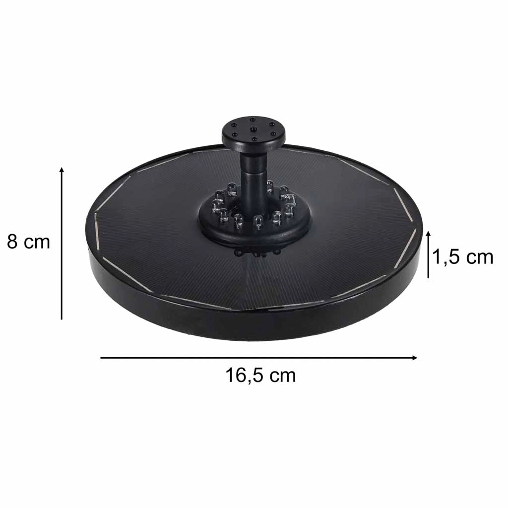 Elegante zonnefontein met een diameter van 16,5 cm die je vijver of vogelbad verandert in een levendige waterdecoratie. Dankzij zonne-energie werkt hij zonder kabels, heeft automatische LED RGB-verlichting bij schemering en biedt 8 verwisselbare sproeikoppen voor verschillende watereffecten. De stille werking ondersteunt de circulatie en beluchting van het water, terwijl de afneembare pomp het onderhoud vergemakkelijkt.