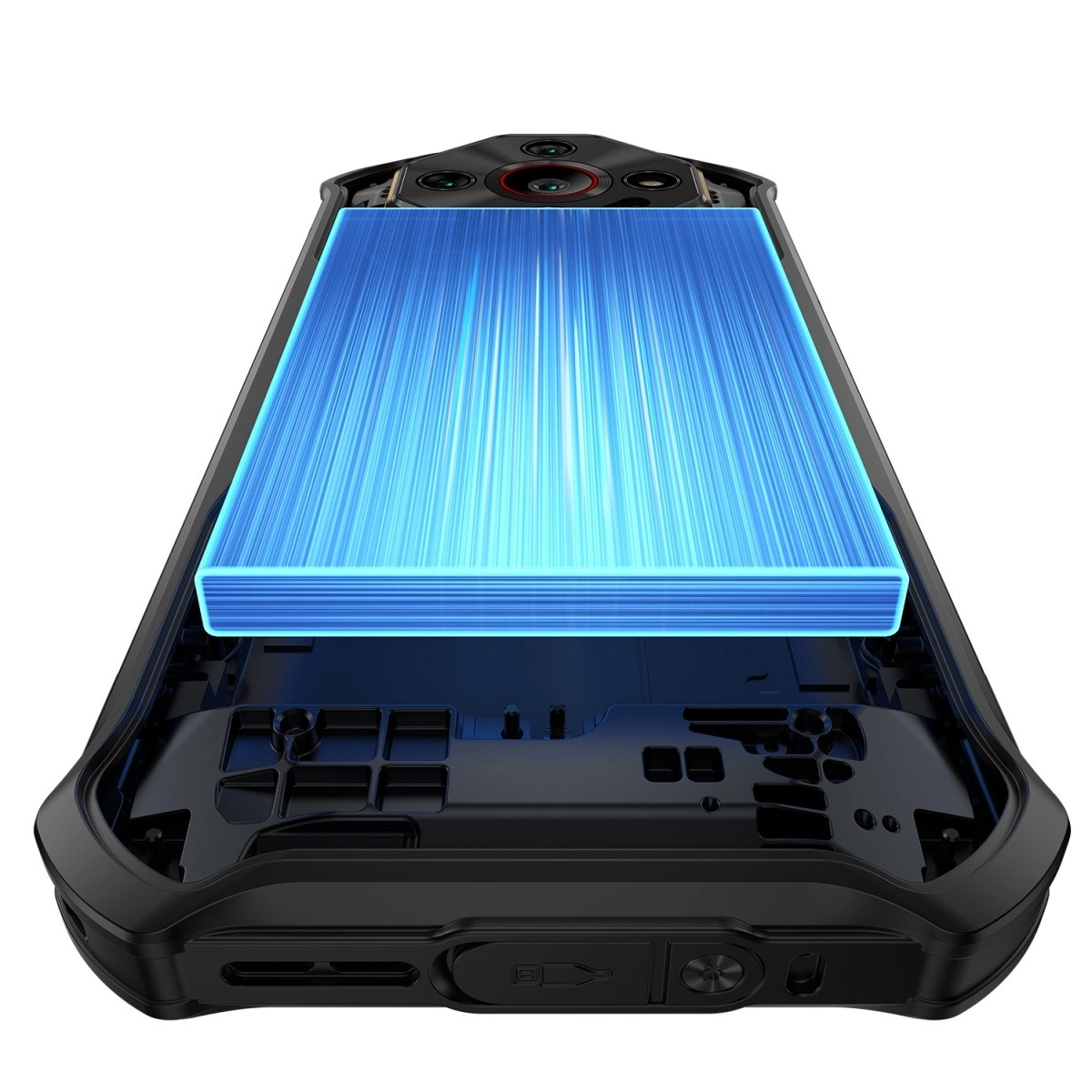 Een frame met metalen accenten, rubberen randen en afgedichte connectoren beschermt de telefoon tegen water, stof en harde schokken. Ideaal voor de bouw, werkplaats en outdoor.