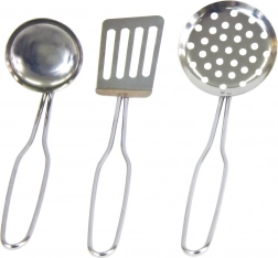 Soeplepel, zeef, spatel en pannenlap stellen kinderen in staat alle kookhandelingen tijdens het spel te beheersen.