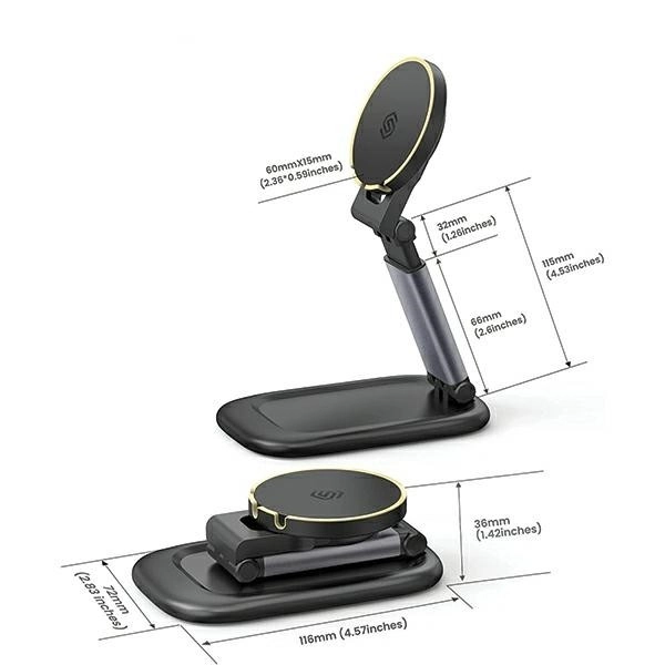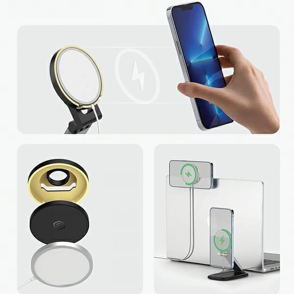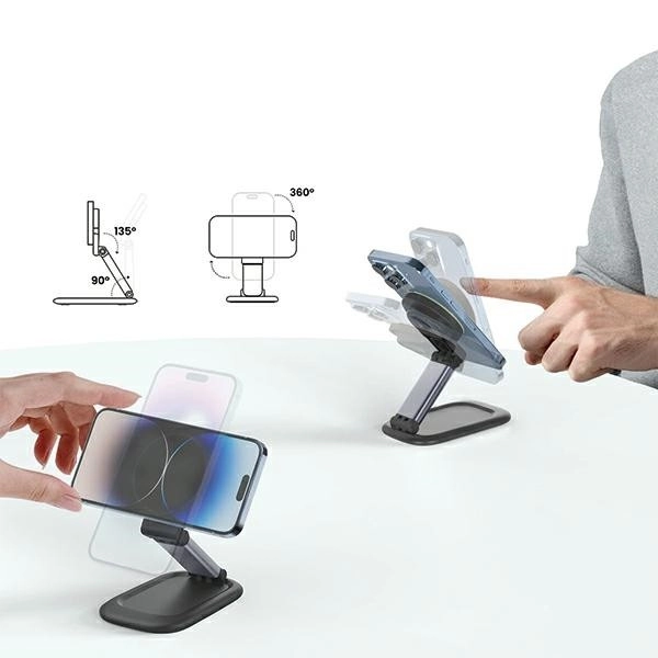 De bovenste magnetische plaat kan eenvoudig worden vervangen door een draadloze MagSafe-oplader, zodat je van de standaard een praktische laadstation maakt. Bovendien kan de afneembare magnetische kop dienen als houder aan de rand van het laptopscherm, zodat je iPhone verandert in een hoogwaardige webcam – ideaal voor videoconferenties, streaming of het delen van notities op je bureau tijdens een gesprek.