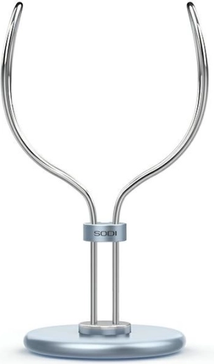 De minimalistische metalen lijnen van de standaard verbeteren de geluidsverspreiding en vullen tegelijkertijd een modern kantoor- of thuisinterieur aan.