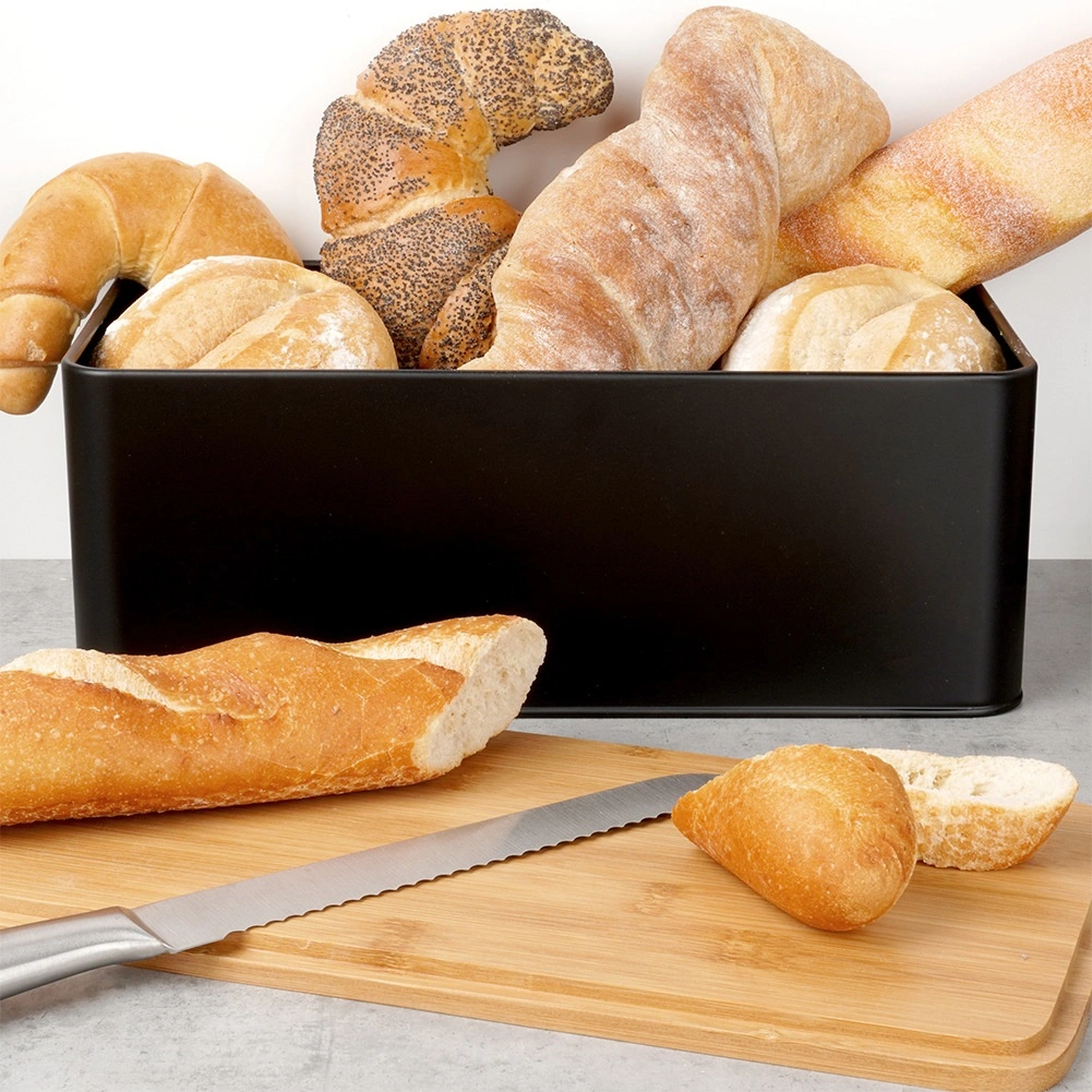 De matte metalen behuizing en het precies passend deksel beperken de luchttoevoer en voorkomen dat het brood uitdroogt.