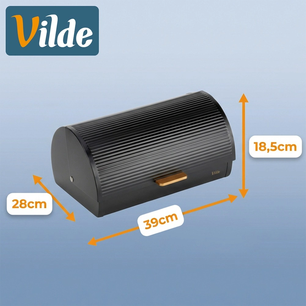Praktische en ruime broodtrommel met afmetingen 39 × 28 × 18,5 cm biedt een veilige plek voor brood, broodjes en zoet gebak. De stevige metalen constructie met poedercoating in matzwart is bestand tegen beschadiging en helpt de ideale bewaaromstandigheden te behouden.