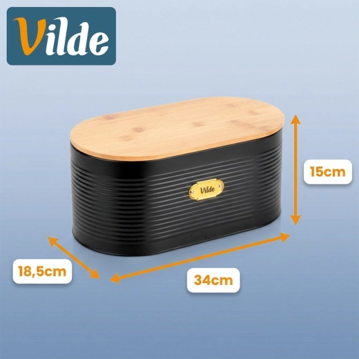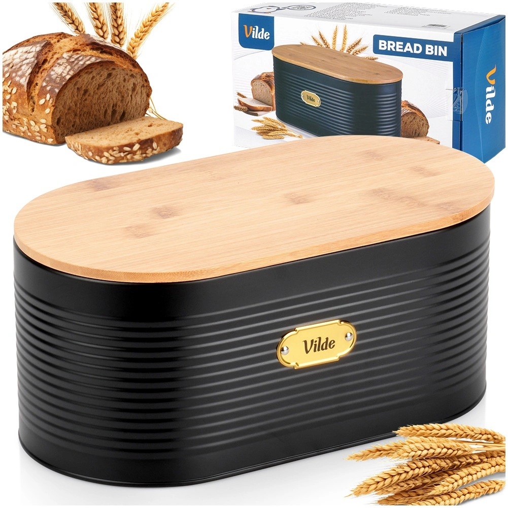 De design broodtrommel combineert duurzaam gelakt metaal met natuurlijk bamboe voor langdurige versheid van bakwaren en orde op het aanrecht. Dankzij de ovale vorm en de afmetingen 34 × 18,5 × 15 cm biedt hij voldoende ruimte voor brood, broodjes en ander gebak.