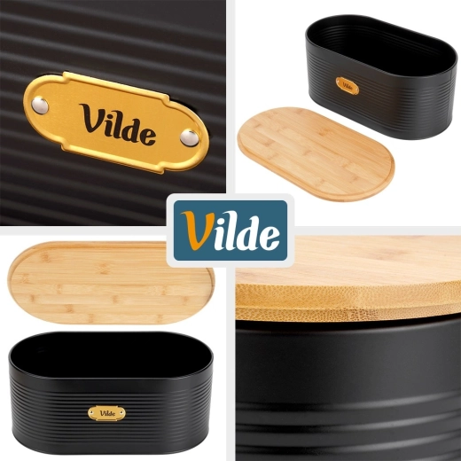 De matzwarte kleur met elegante ribbelstructuur past perfect bij zowel moderne als klassieke interieurs. Het houten deksel fungeert tevens als snijplank – neem het eraf en snijd gemakkelijk in porties.