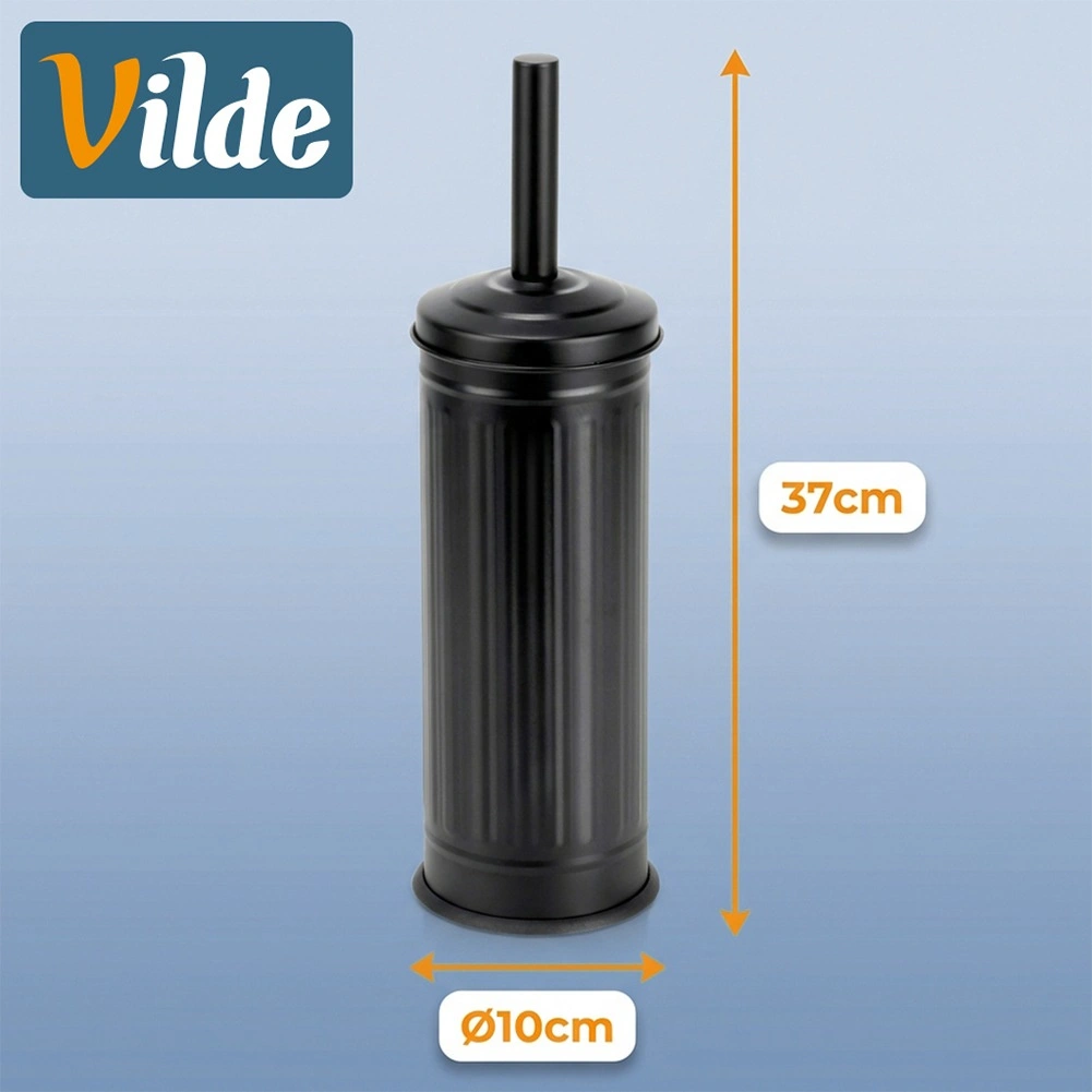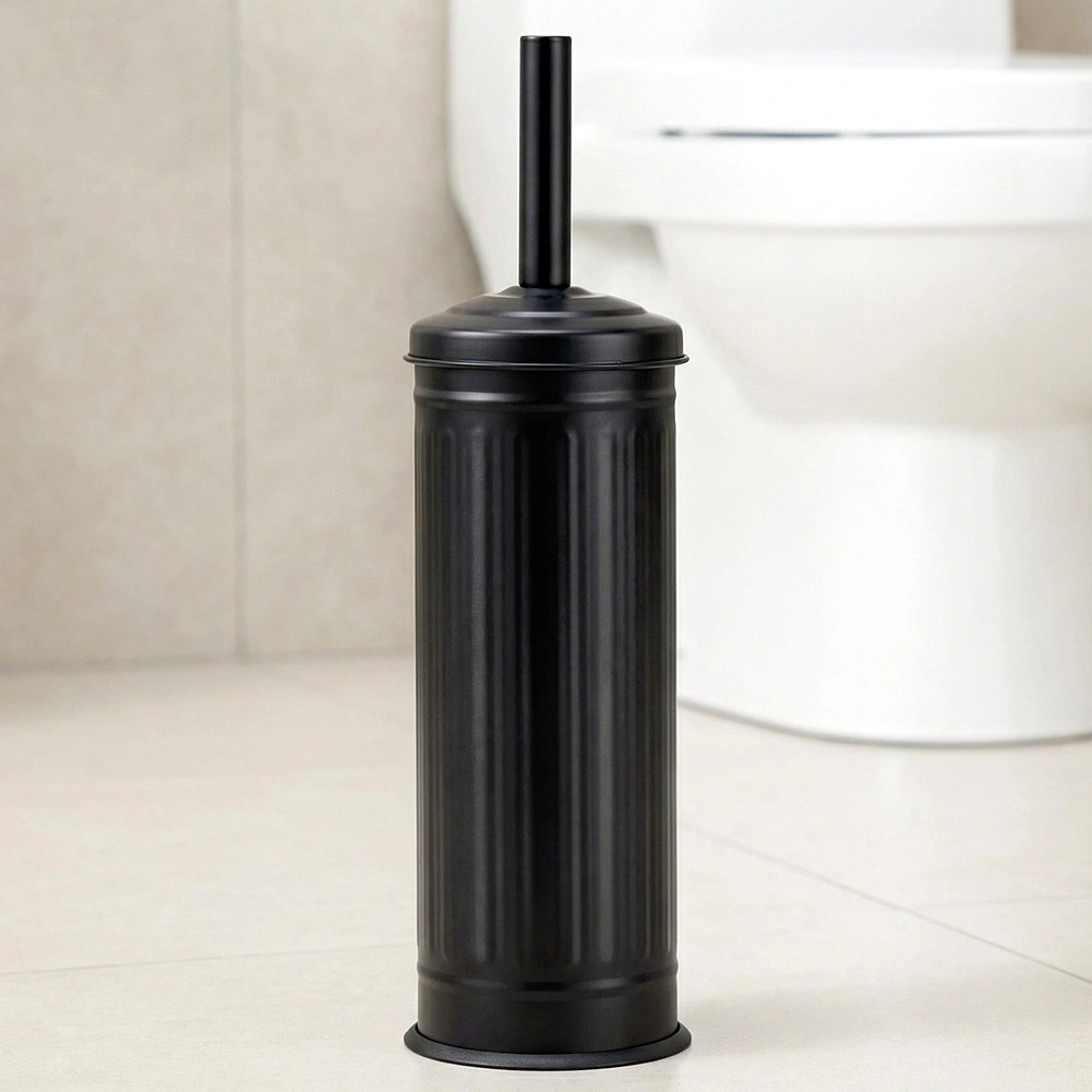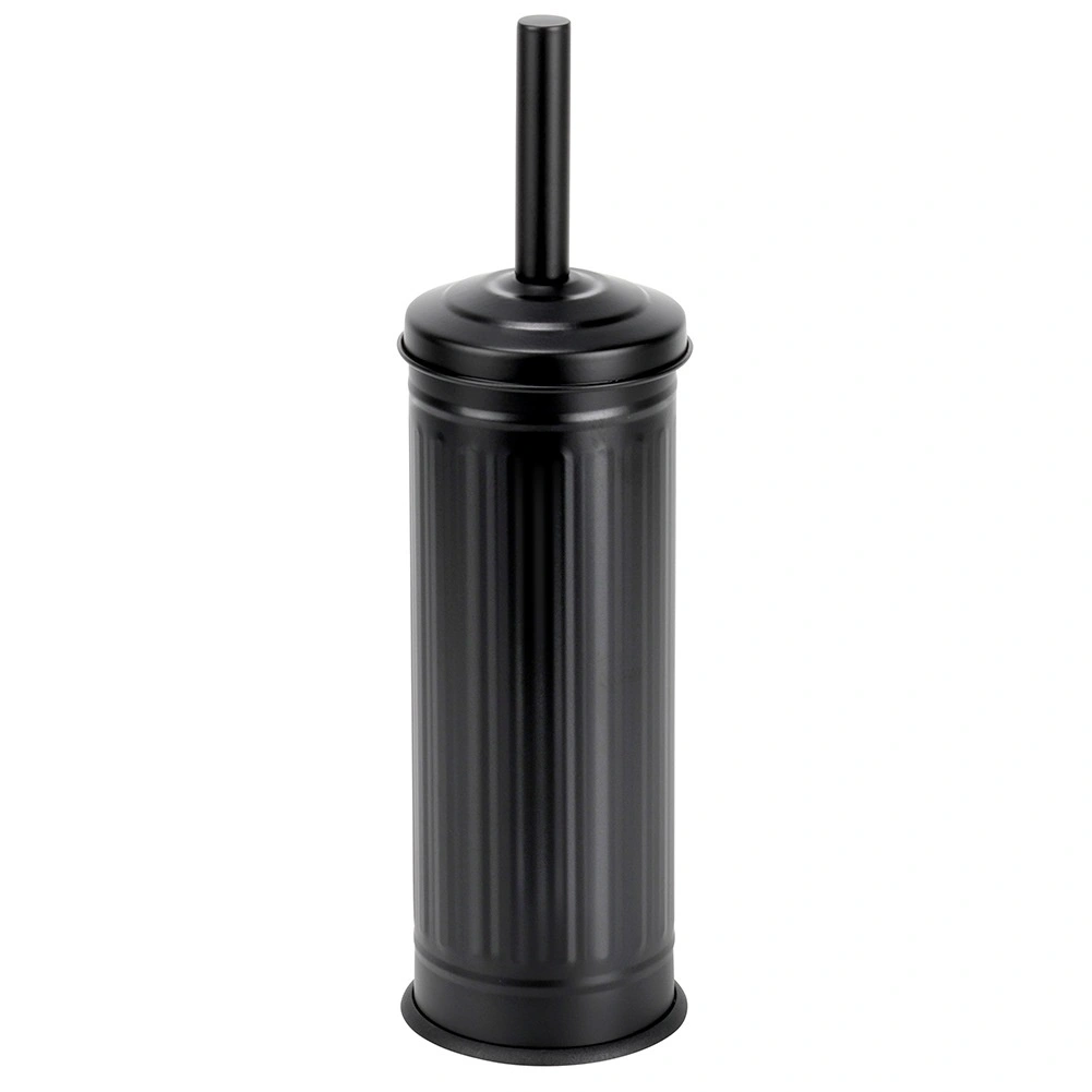 Stijlvolle matzwarte houder met deksel verbergt de borstel, vangt druppels op en houdt de vloer droog en schoon.
