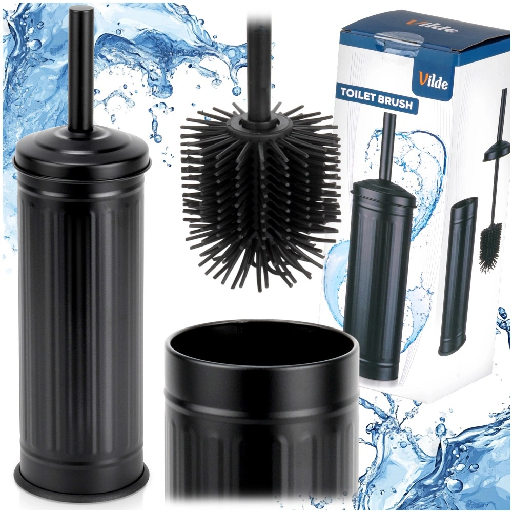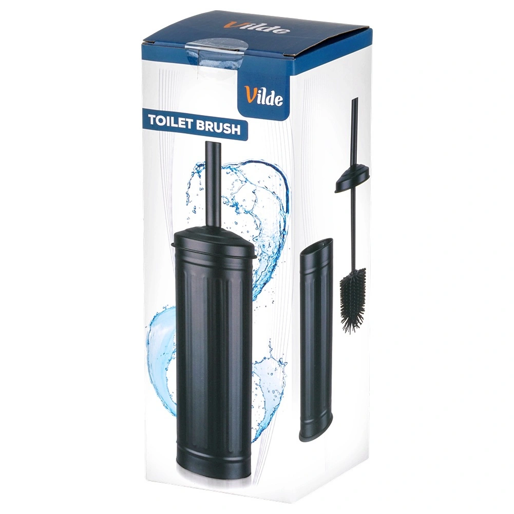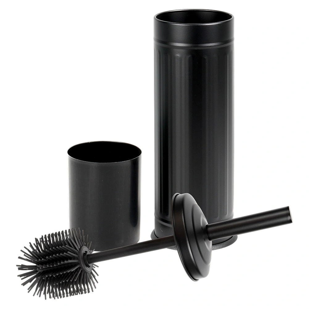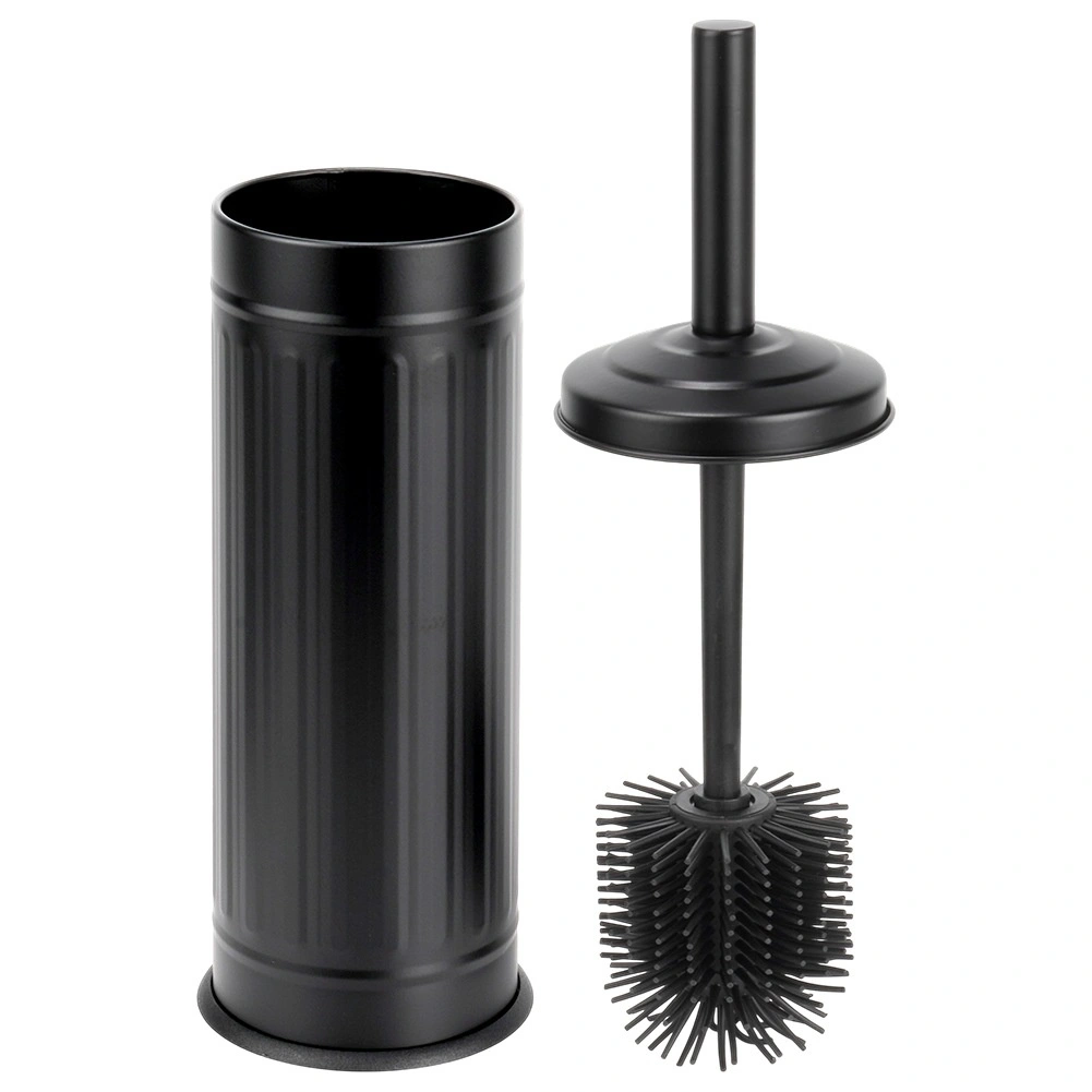 Stijlvolle matzwarte houder met deksel verbergt de borstel, vangt druppels op en houdt de vloer droog en schoon.