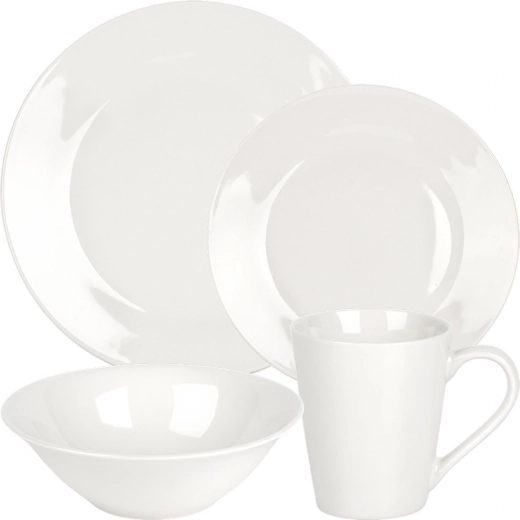 Deze 16-delige porseleinen set is een praktische en stijlvolle oplossing voor het dagelijkse diner met het gezin. Dankzij het gladde geglazuurde oppervlak en de tijdloze witte kleur combineer je het servies moeiteloos met elk tafelkleed of decor. Hoogwaardig porselein zorgt voor een lange levensduur en comfortabel gebruik thuis en in de horeca.