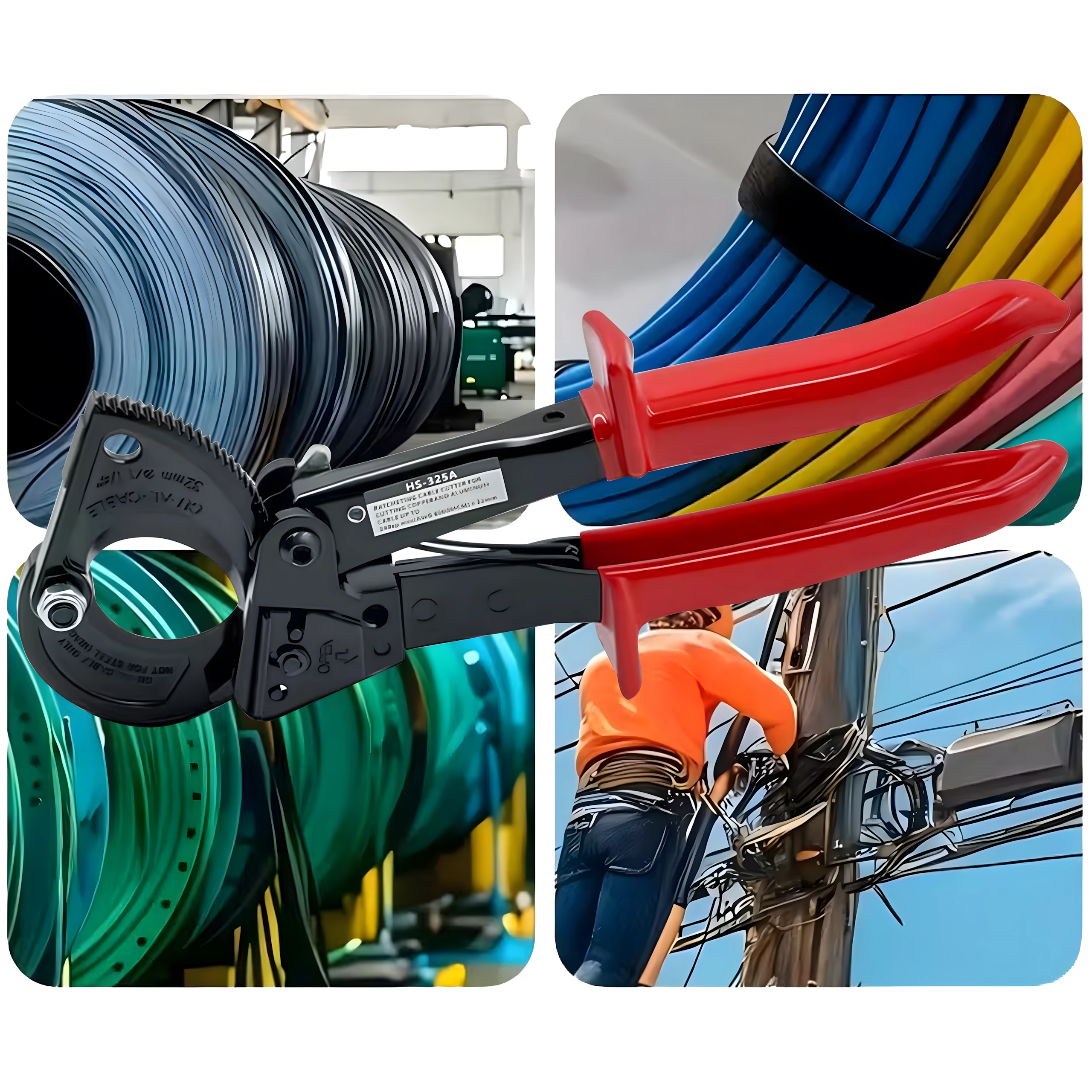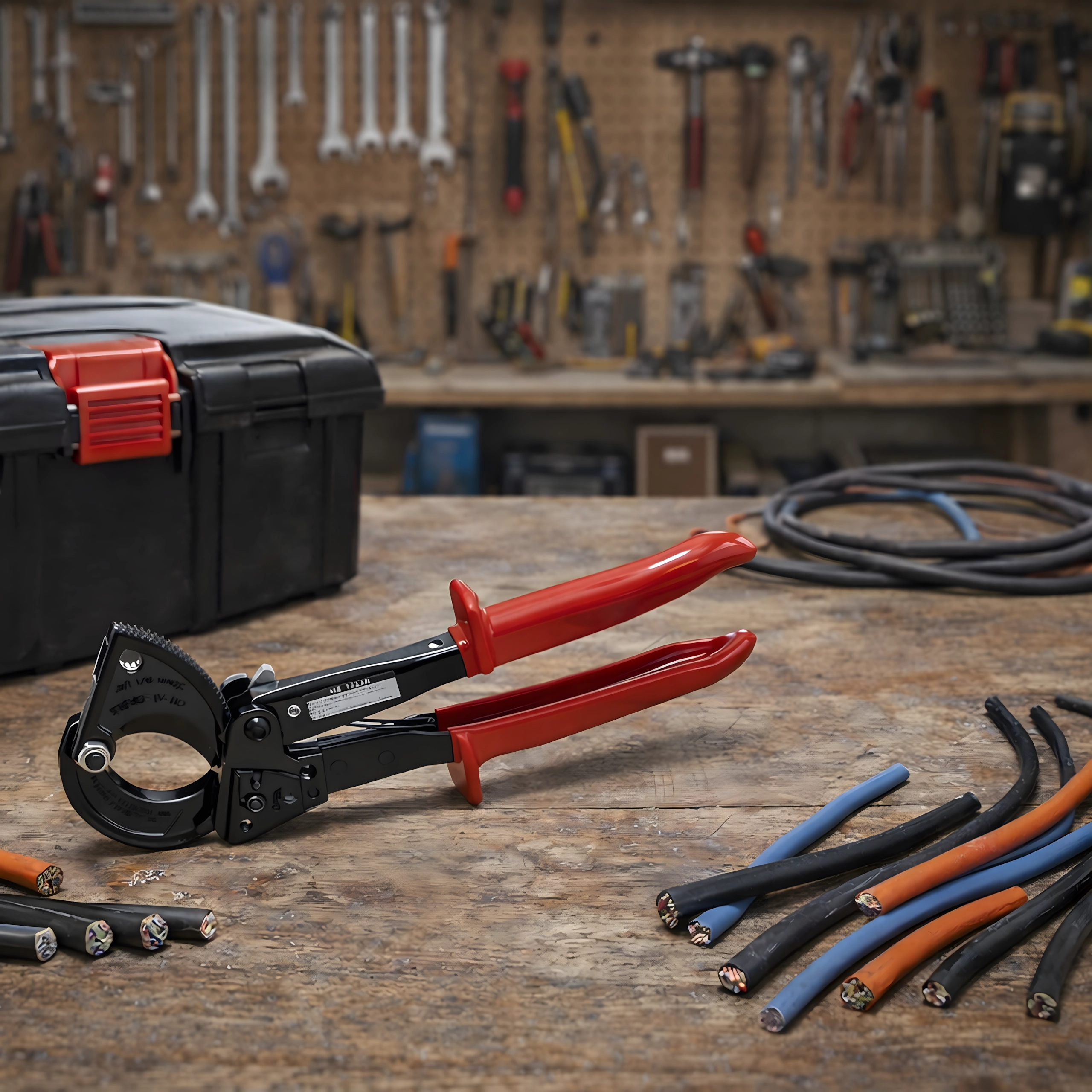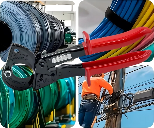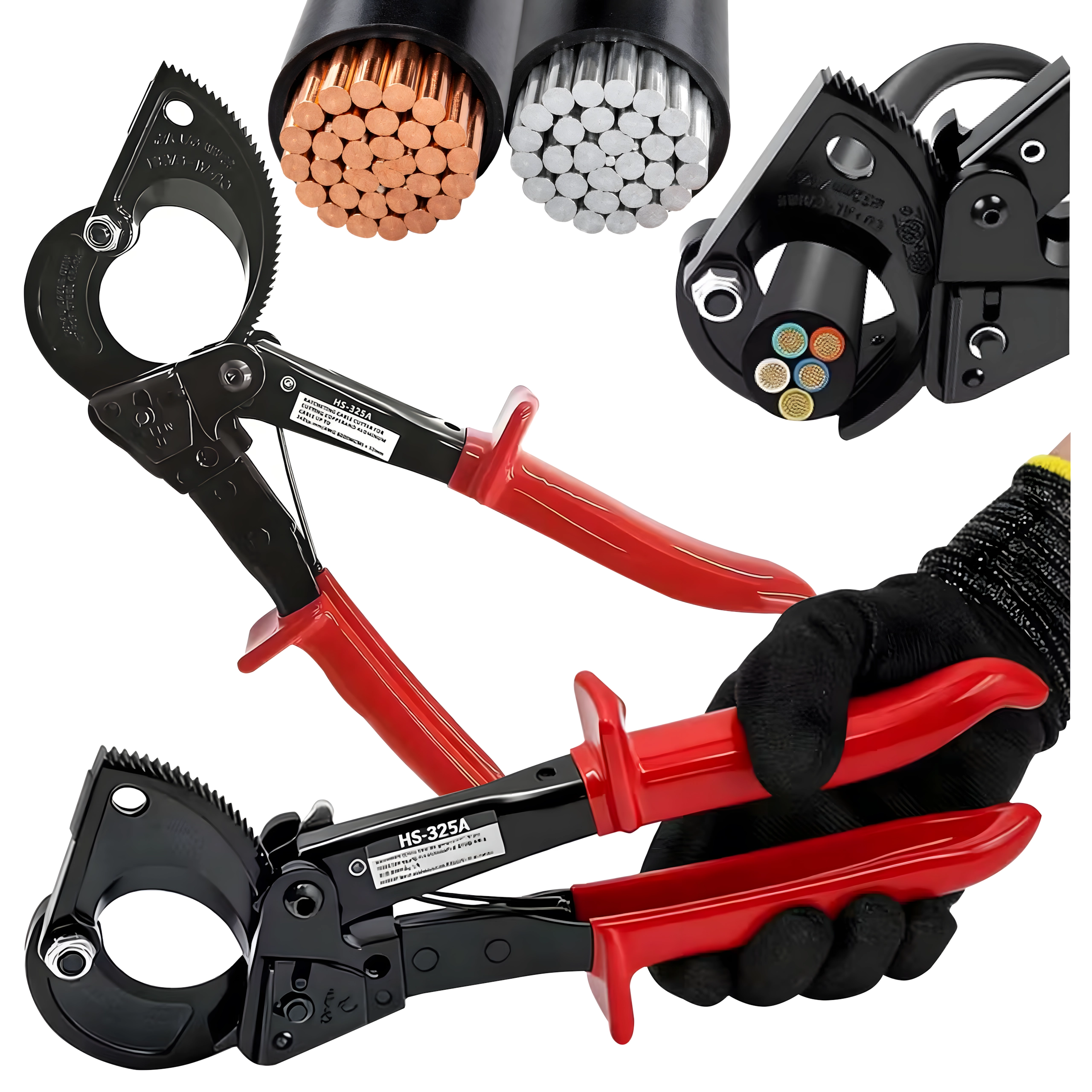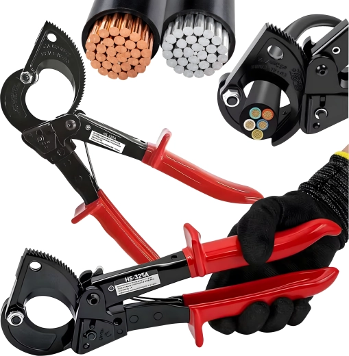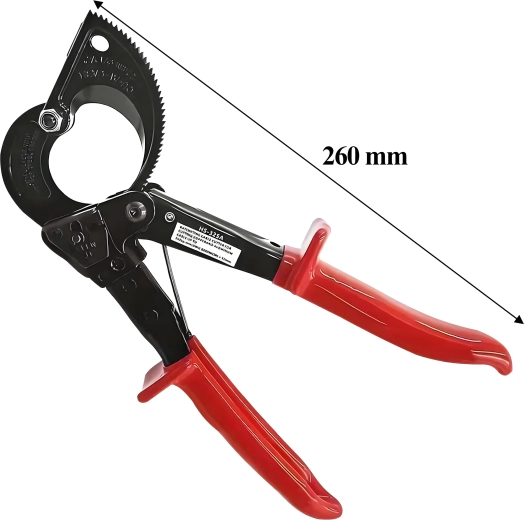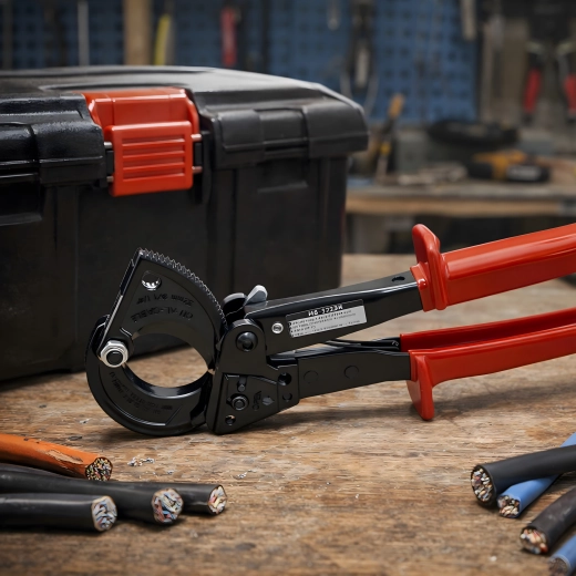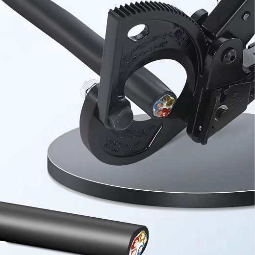 Deze professionele ratel-kniptang is ontworpen voor snel en schoon knippen van meeraderige koper- en aluminiumkabels zonder vervorming van de geleider. De rateloverbrenging vermenigvuldigt de kracht en maakt een stapsgewijze, gecontroleerde snede mogelijk, ook bij zeer grote doorsneden tot 240 mm².