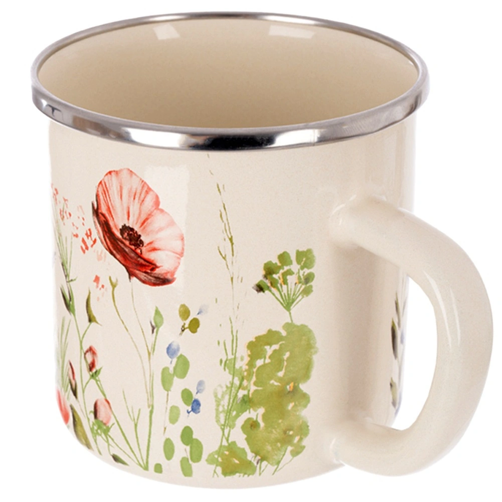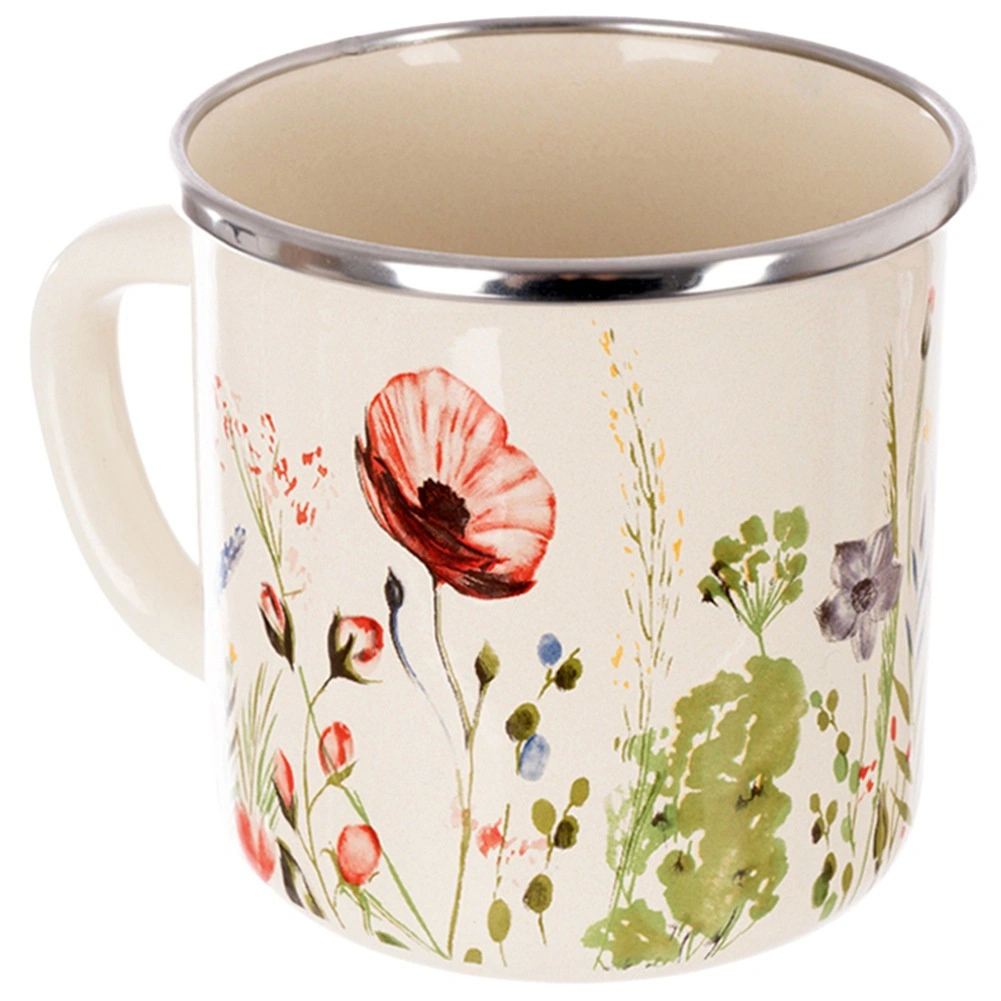 Ontdek de veelzijdige crèmekleurige geëmailleerde mok met klaprozenmotief, ideaal voor zowel warme als koude dranken. De duurzame geëmailleerde stalen body en de roestvrijstalen rand zorgen voor een lange levensduur, comfortabel drinken en betere hittebestendigheid. Dankzij de compacte afmetingen is hij ideaal voor in de keuken, op de camping, in het vakantiehuis en tijdens trektochten.