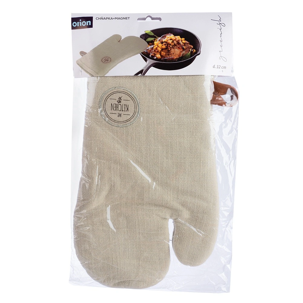 Praktische keukenovenwant van 100% katoen in olijfgroene kleur zorgt voor betrouwbare bescherming tegen hitte bij koken en bakken. Dankzij de ingebouwde magneet en het ophanglusje berg je haar gemakkelijk op aan de koelkast of oven. De universele maat 17,5 × 32 cm past aan zowel de rechter- als de linkerhand en zorgt voor een comfortabele greep op hete pannen en schalen.