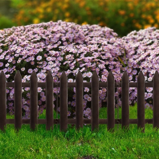 Praktisch en decoratief tuinhek in donkerbruin om het gazon netjes te scheiden van borders, paadjes of sierheesters. Dankzij de modulaire panelen past u het gemakkelijk aan rechte en gebogen lijnen aan, zodat u een strakke en veilige afbakening creëert zonder intensief onderhoud.