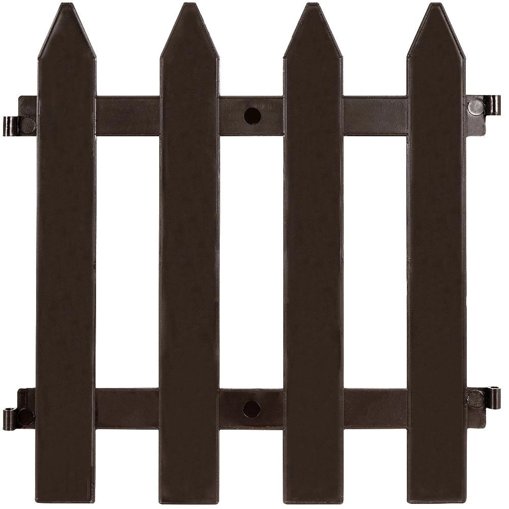 Decoratief bruin tuinhek met afmetingen 30 × 30 cm in een set van 10 stuks, creëert een elegante rand voor borders en gazons. Eenvoudig te installeren, weerbestendig, modulair en uitbreidbaar en dankzij de stevige kunststof constructie met metalen pinnen gaat het jarenlang mee. Totale lengte na montage is 300 cm, ideaal voor een snelle en esthetische afbakening in de tuin.
