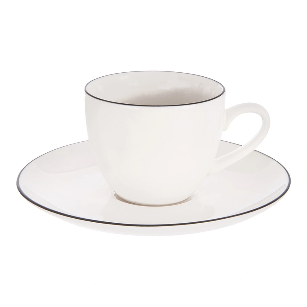 Fijn wit porselein met een contrasterende lijn geeft het DECORA-schoteltje een verfijnde uitstraling die perfect past bij zowel een modern als klassiek servies. De ideale maat van 13 cm zorgt voor veilig neerzetten van een espressokopje en schoon serveren zonder druppels.