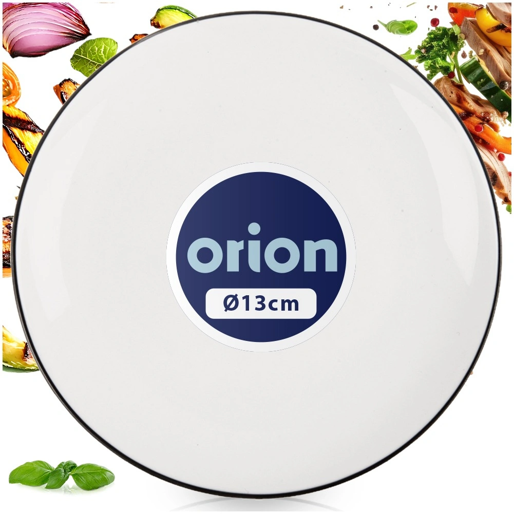 Elegant porseleinen schoteltje met een diameter van 13 cm voor espresso. Minimalistisch design met een dunne donkere rand, tijdloze uitstraling, geschikt voor vaatwasser en magnetron, stabiele steun voor het kopje en universeel gebruik voor het serveren van kleine desserts.