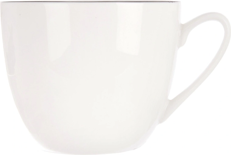 Elegant wit porseleinen kopje uit de collectie DECORA met een inhoud van 200 ml, ideaal voor koffie en thee. Het heeft een dunne zwarte rand voor een tijdloze uitstraling, een ergonomisch oor voor comfortabel vasthouden en is geschikt voor vaatwasser en magnetron. Een uitstekende keuze voor dagelijks gebruik en stijlvol serveren.