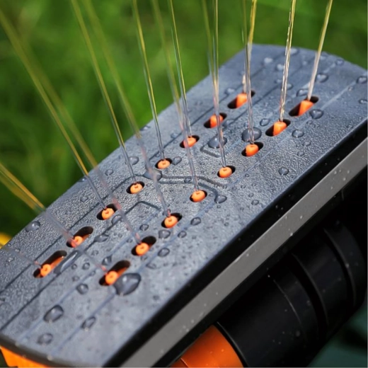 De kop met 16 sproeiers creëert meerdere gelijkmatige waterstralen die grote oppervlakken effectief bewateren zonder te verzadigen.